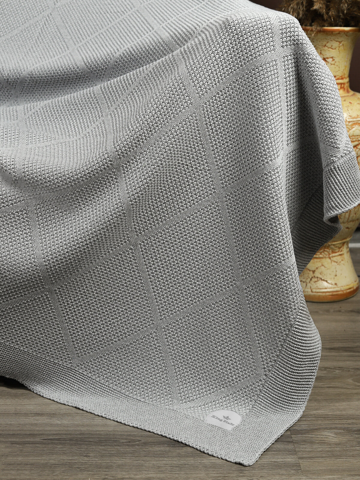 Отзывы на Плед 180х220, вязаный, KING PLAID, светло-серый, хлопок, покрывало на кровать, на диван, на кресло, в подарочной сумке