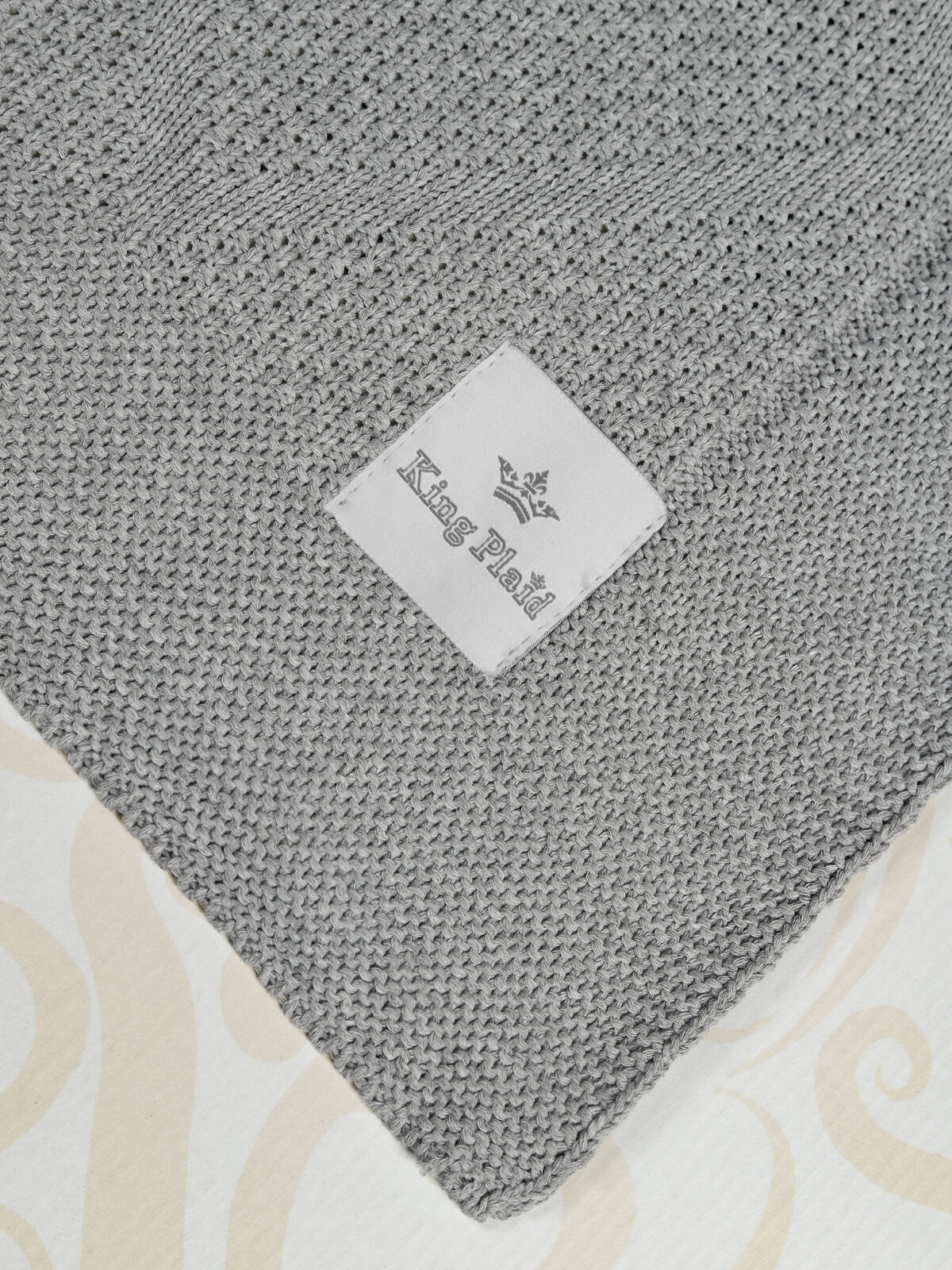 Плед 180х220, вязаный, KING PLAID, светло-серый, хлопок, покрывало на кровать, на диван, на кресло, в подарочной сумке информация: