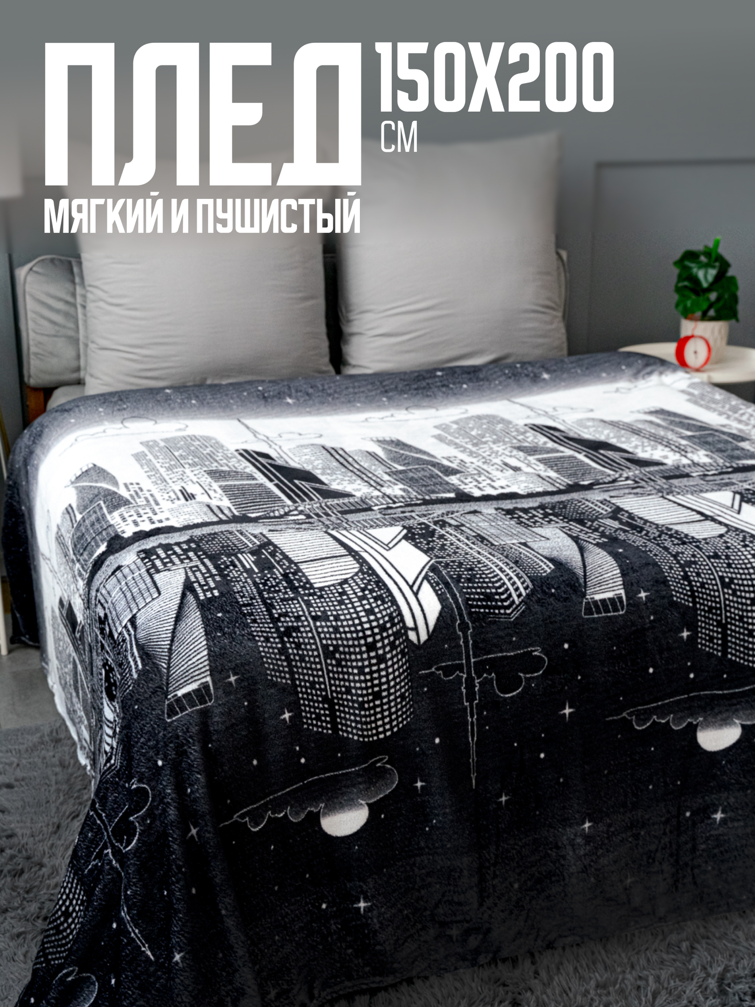Плед Москва Сити 150х200см, аэрософт 190г/м, пэ100% информация: