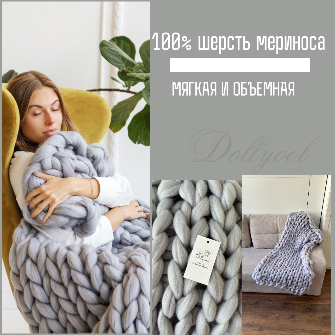 Отзывы на Плед крупной вязки 70х120 см, 100% шерсть мериноса, цвет светло-серый