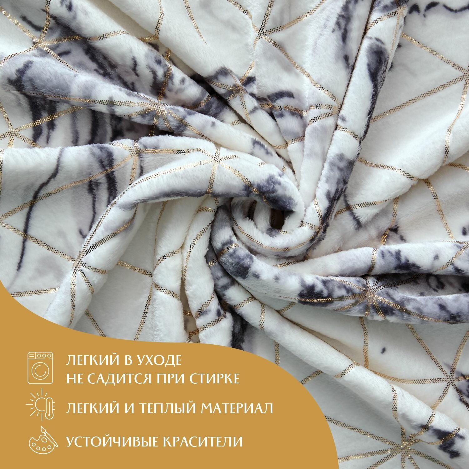 Плед 150х200 см велсофт "Mia Cara" Аморе голд 1 213 ₽