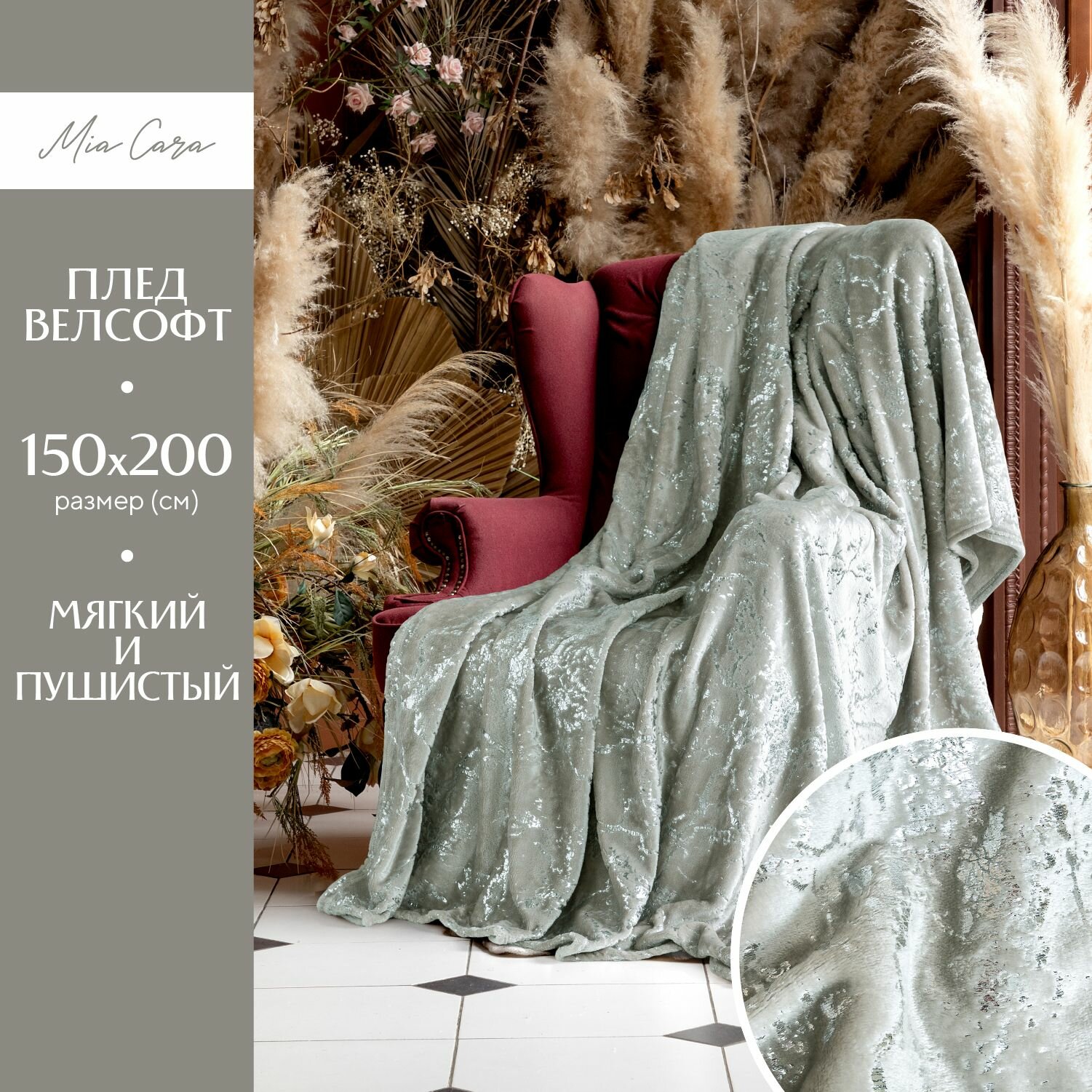 Плед 150х200 см велсофт "Mia Cara" Шайни информация: