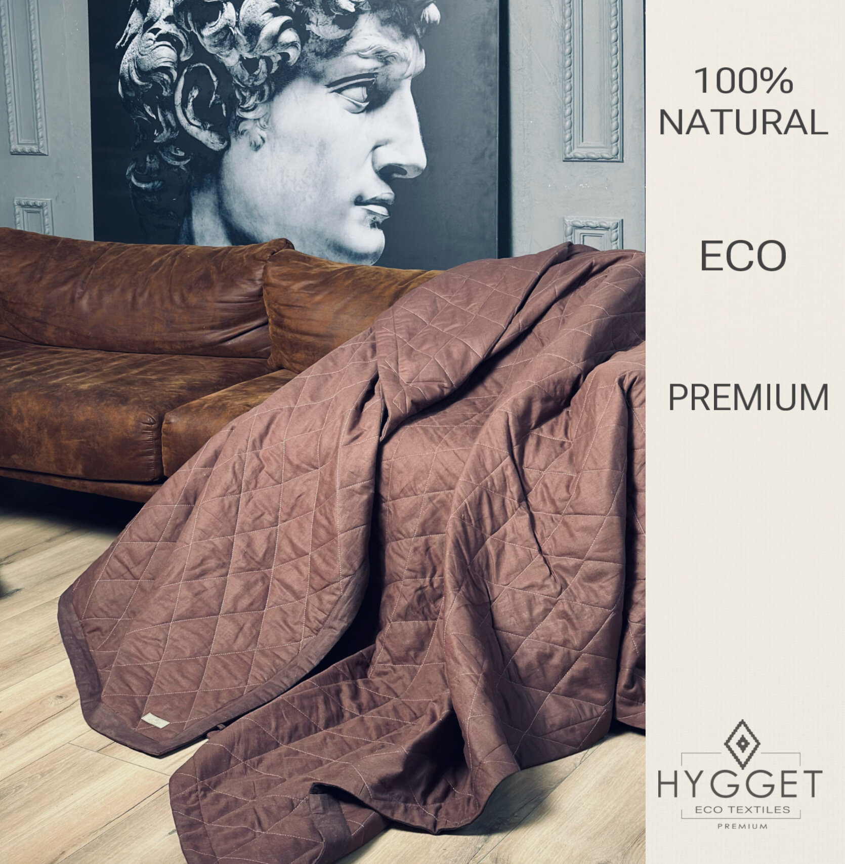 Отзывы на Дизайнерское льняное стеганое покрывало на кровать или диван Natural шоколад, 215x260 см., Лен, плед