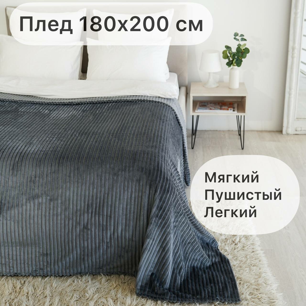 Плед Texrus, Велсофт 200х180 серый/мягкий информация: