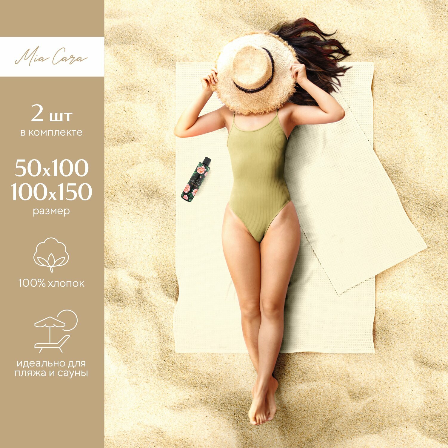 Пляжное вафельное полотенце (2 шт) "Mia Cara" (50х100+100х150) молочный информация: