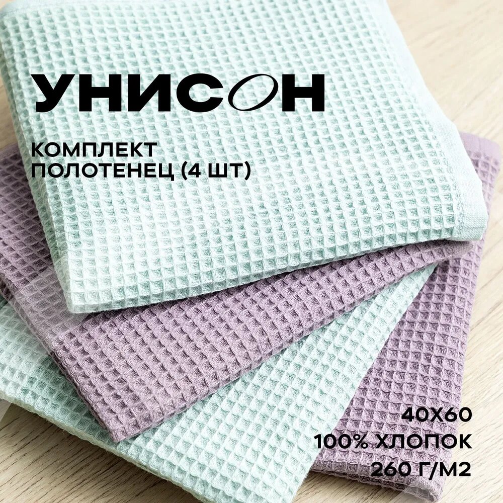 Отзывы на Комплект вафельных полотенец 40х60 (4 шт.) "Унисон" mint/lilac