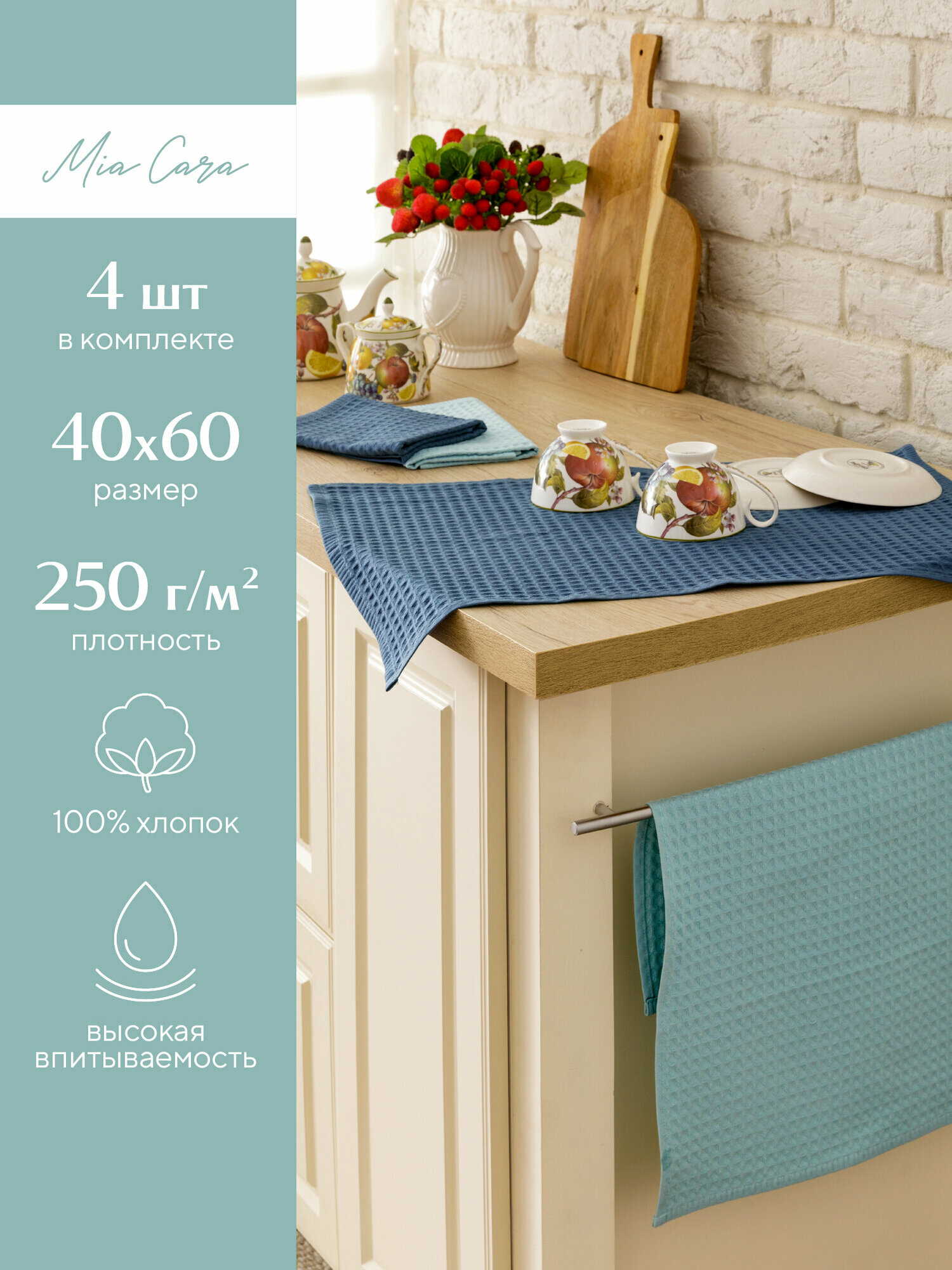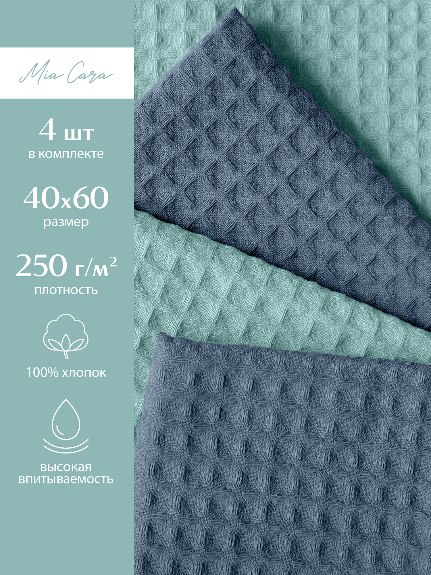Отзывы на Комплект вафельных полотенец 40х60 (4 шт.) "Mia Cara" синий/мятный