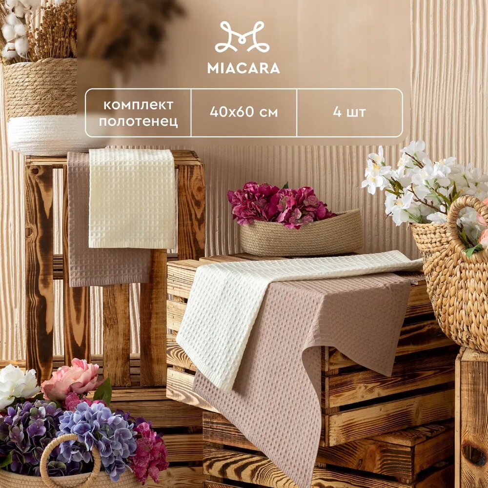 Комплект вафельных полотенец 40х60 (4 шт.) "MiaCara" капучино/молочный информация:
