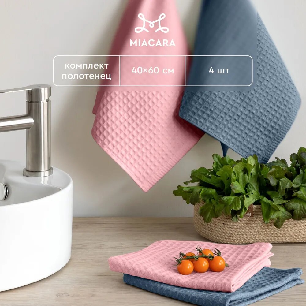 Отзывы на Комплект вафельных полотенец 40х60 (4 шт.) "Mia Cara" синий/пыльная роза