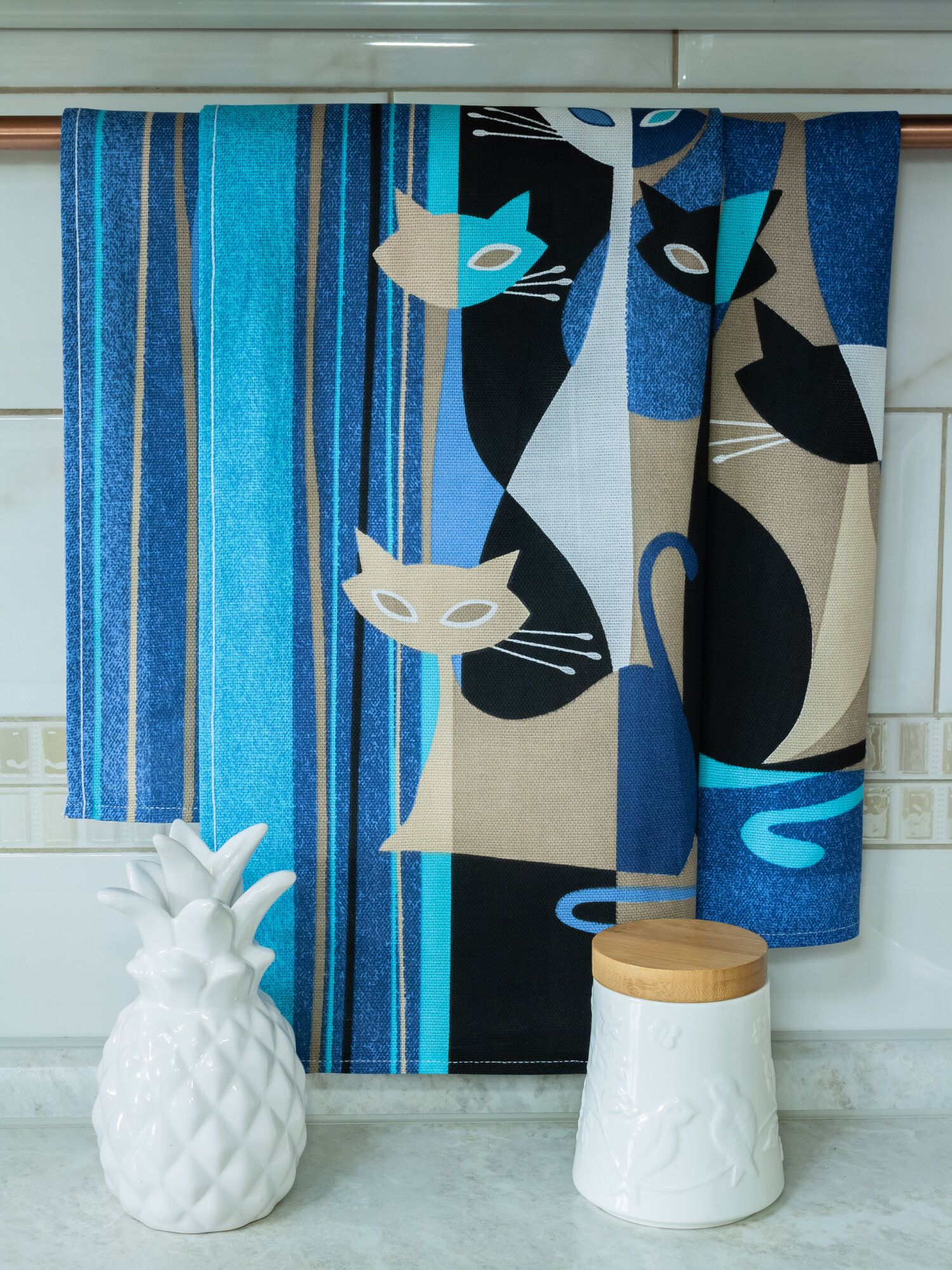 10 цен на Полотенце кухонные 3 шт Коты синий