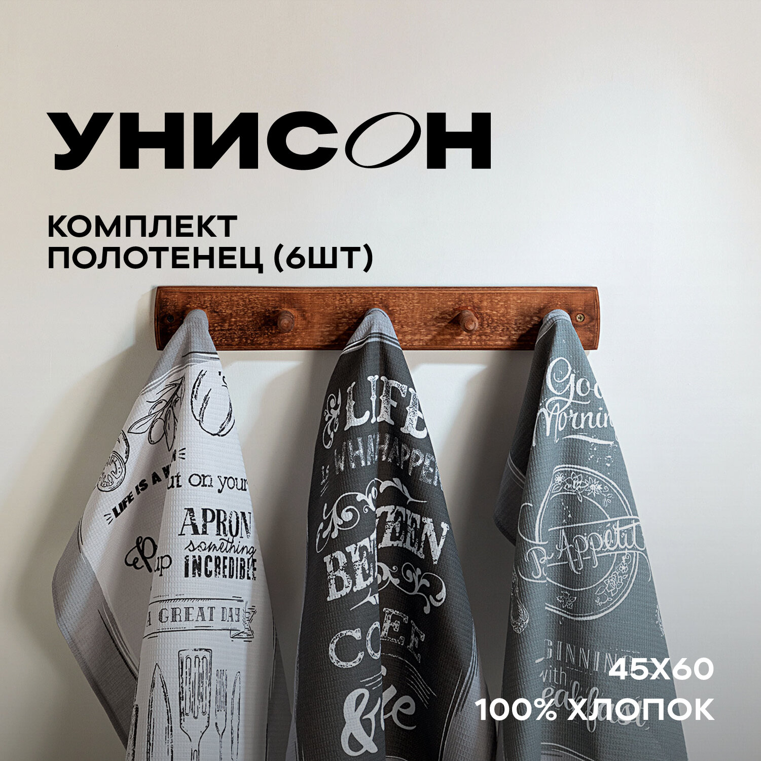 Отзывы на Комплект вафельных полотенец 45х60 (6 шт.) "Унисон" рис 33068-1/33069-1 Loft Cafe