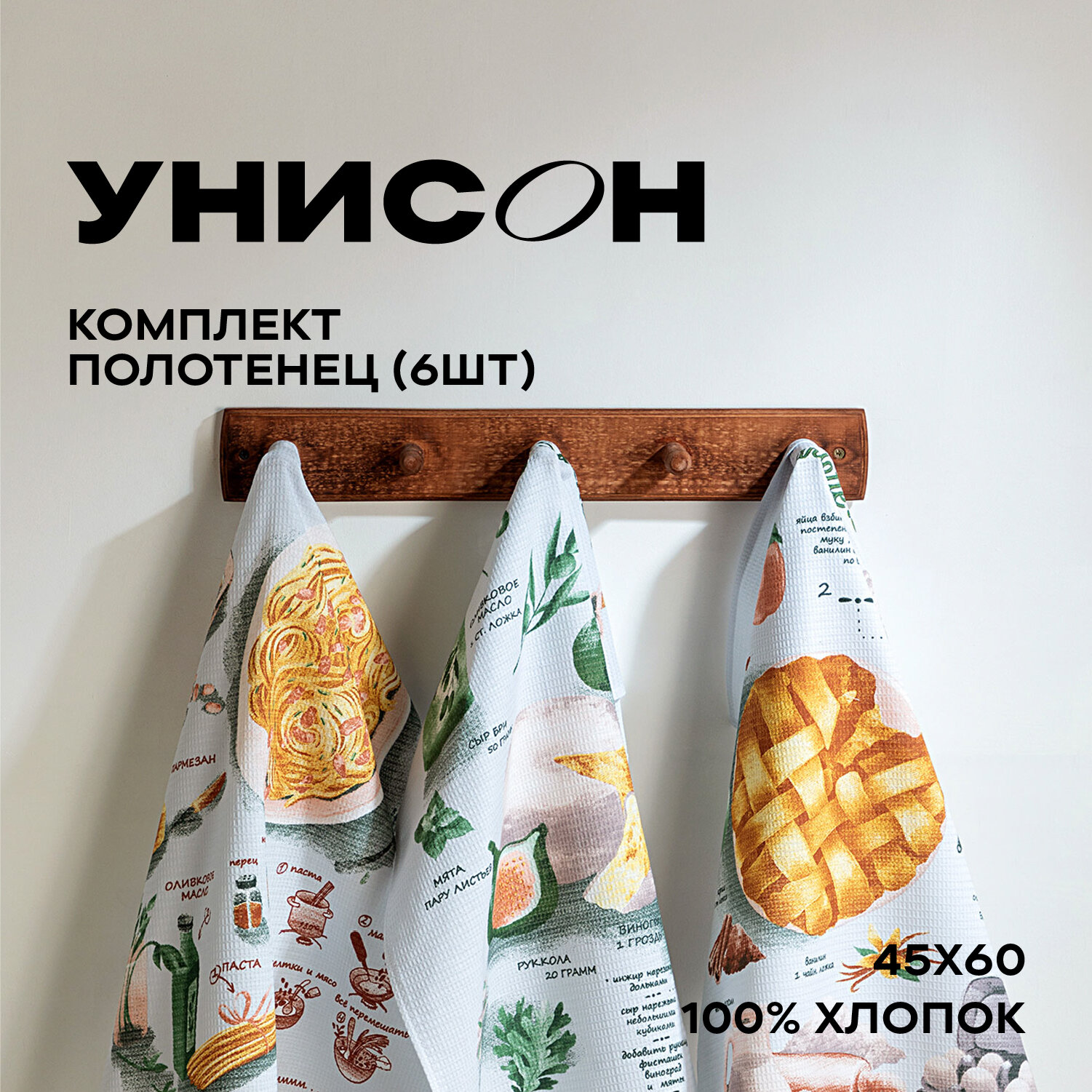 Отзывы на Комплект вафельных полотенец 45х60 (6 шт.) "Унисон" рис 33139-1 Kitchen recipes
