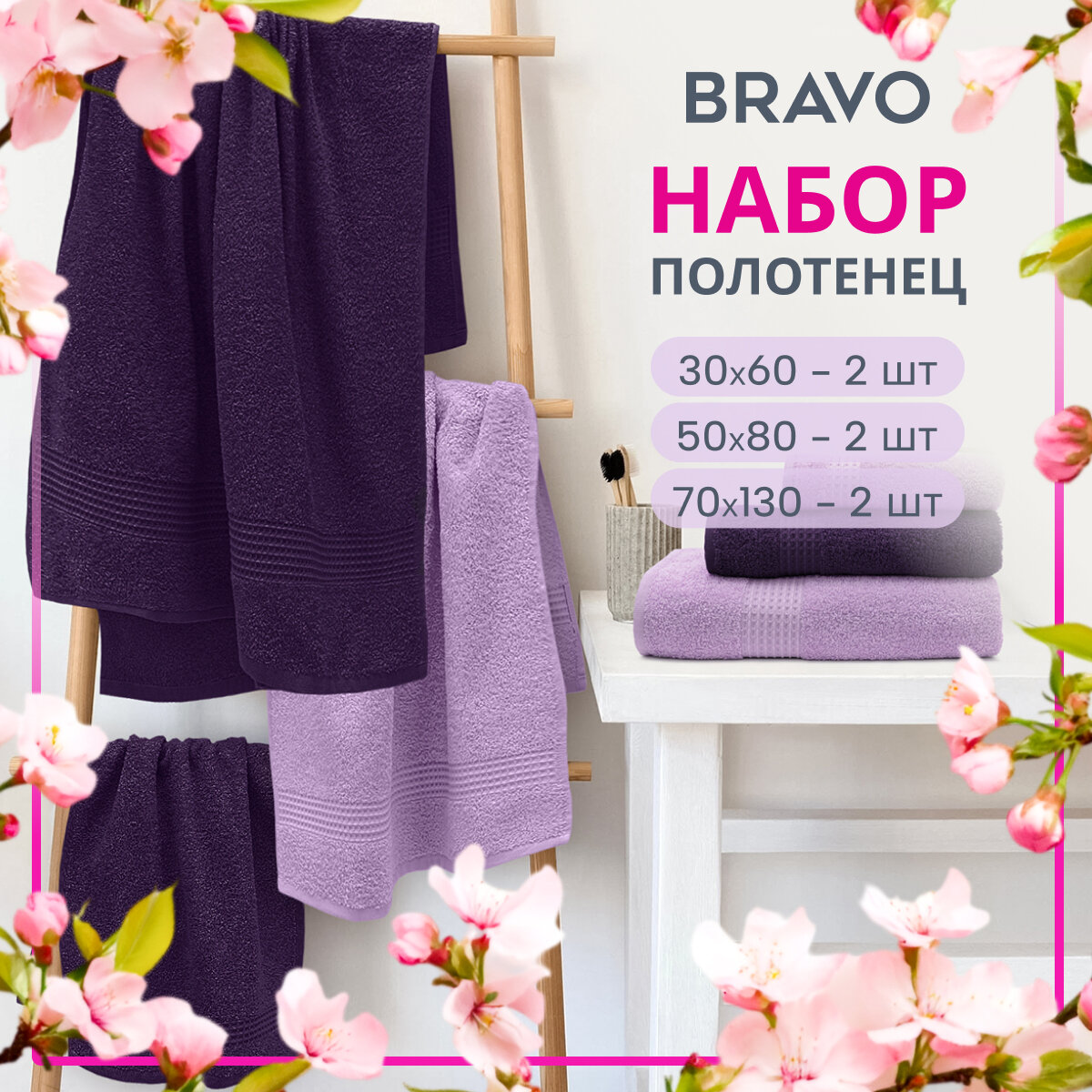 10 цен на Большой набор махровых полотенец для всей семьи Самур - 6 штук (2 больших, 2 средних, 2 маленьких) Фиолетовый/ хлопок / подарок