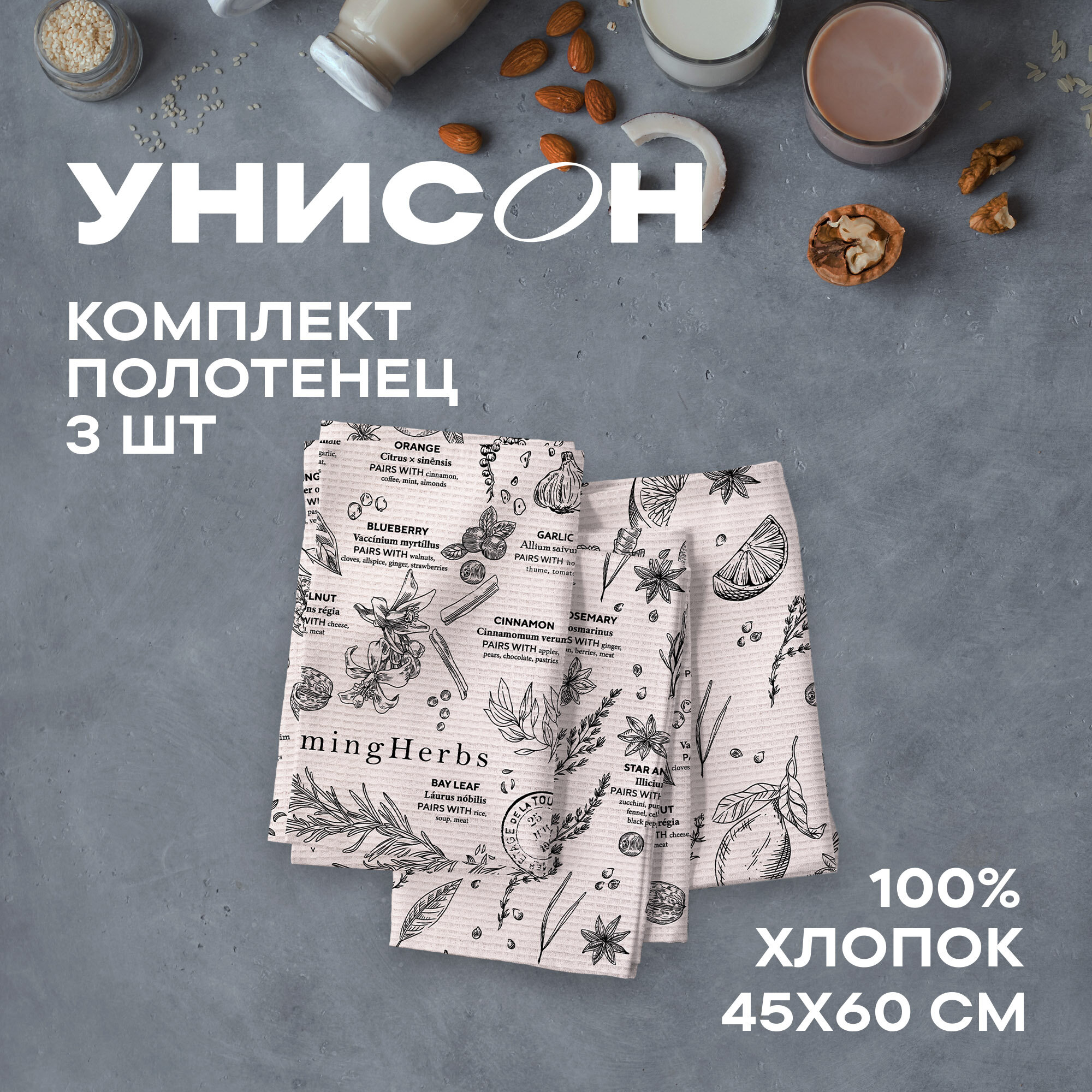10 цен на Набор вафельных полотенец 45х60 (3 шт.) "Унисон" рис 33261-1 Warming Herbs