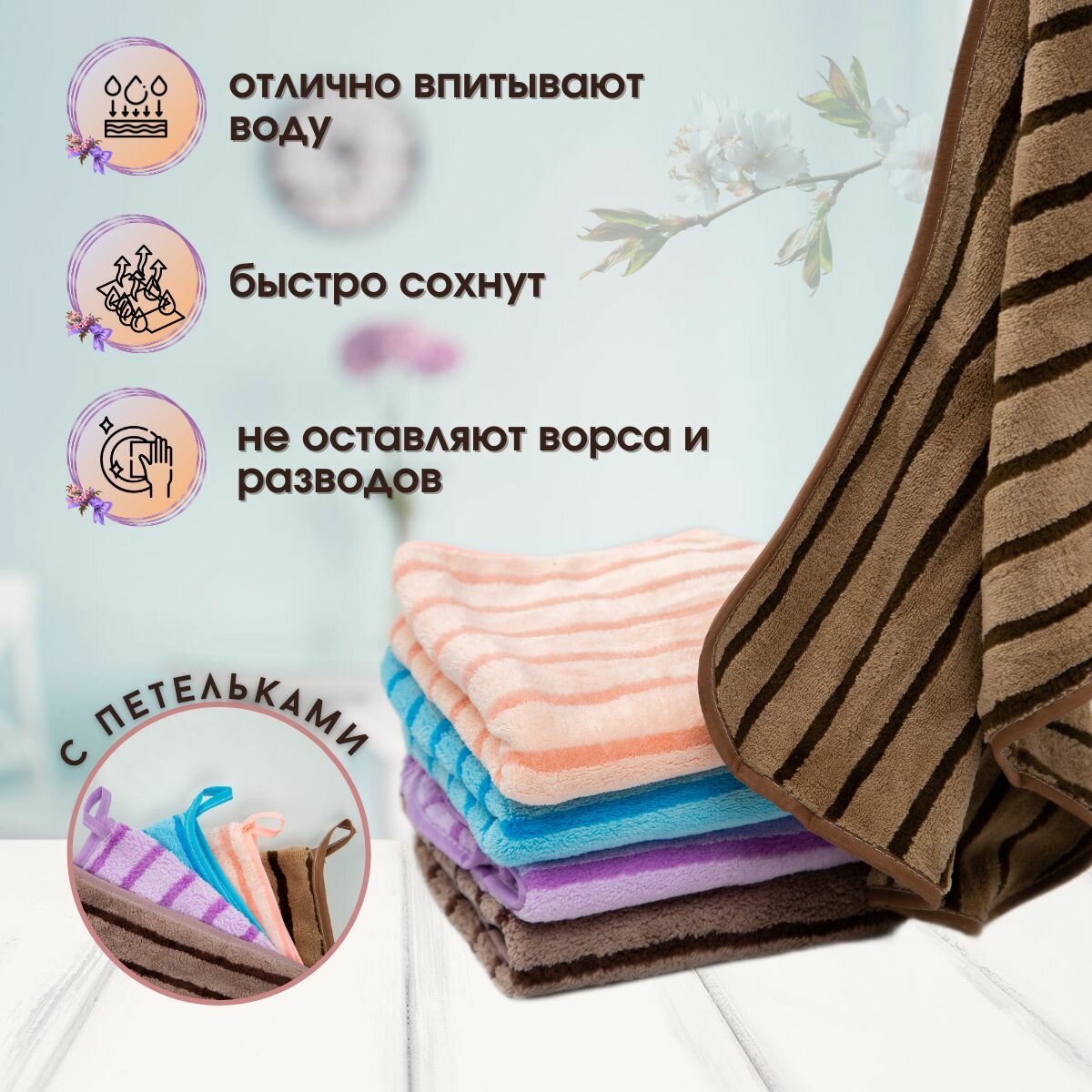 Набор полотенец CASEROLUX из 5 шт из микрофибры 35x75 / мягкие, однотонные с петелькой / для рук, волос, тела и лица. 933 ₽