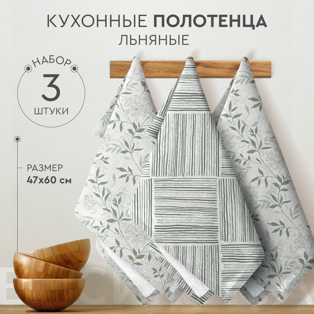 10 цен на Набор полульняных полотенец Василиса 47х60 см - 3 штуки, Акация, отбеленный