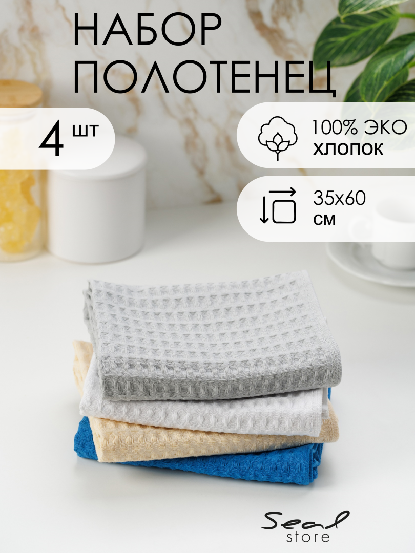 Набор из 4-х вафельных кухонных полотенец SealStore Эконом, (35*60), лето 660 ₽