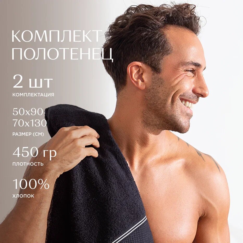 10 цен на Комплект из 2х махровых полотенец (50х90;70х130) "Унисон" Grand Prix черный