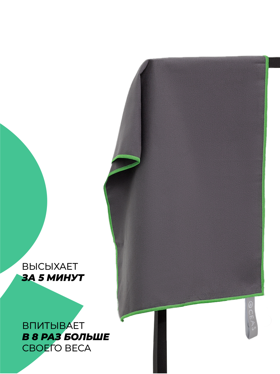 10 цен на Полотенце спортивное OCEAS из микрофибры ,быстросохнущее для фитнеса и йоги, 80х40 см, темно-серый с зеленой строчкой