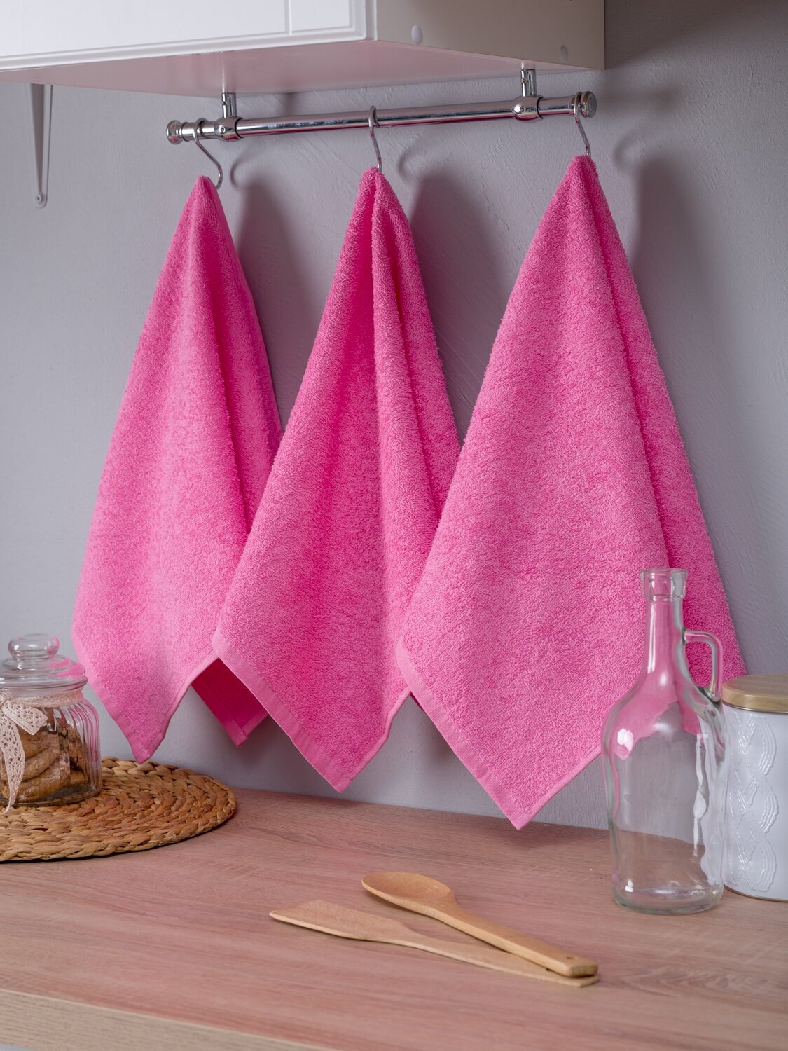 10 цен на Набор полотенец BIO-TEXTILES махровых 3 шт 40*70 розовый кухонный для лица рук ванной комплект в подарок 100% хлопок