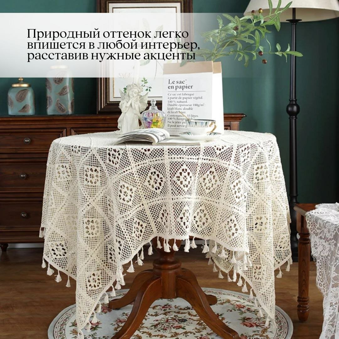 10 цен на Скатерть тканевая бежевая на круглый или квадратный кухонный стол 140*140 кружево