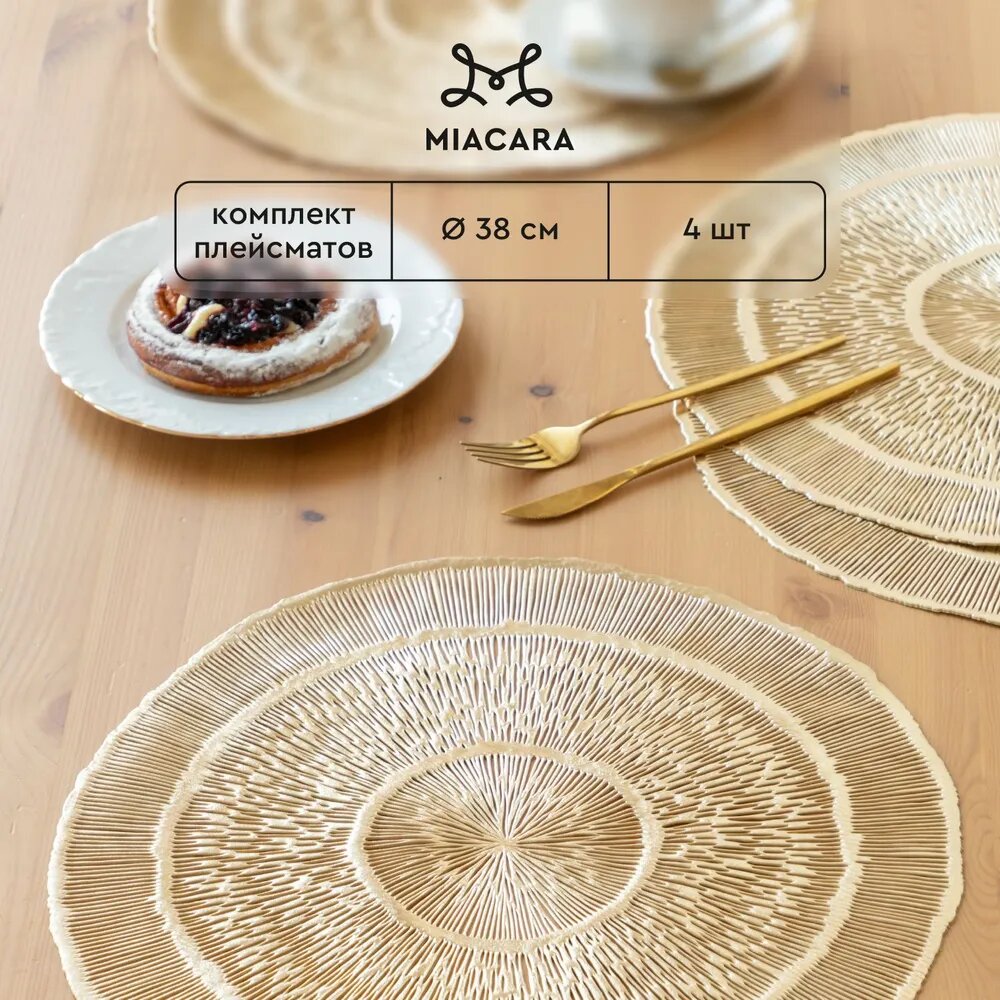 Комплект салфеток/ плейсматов /подставок пластик (4 шт.) 38x38 "Mia Cara" цвет золотистый информация: