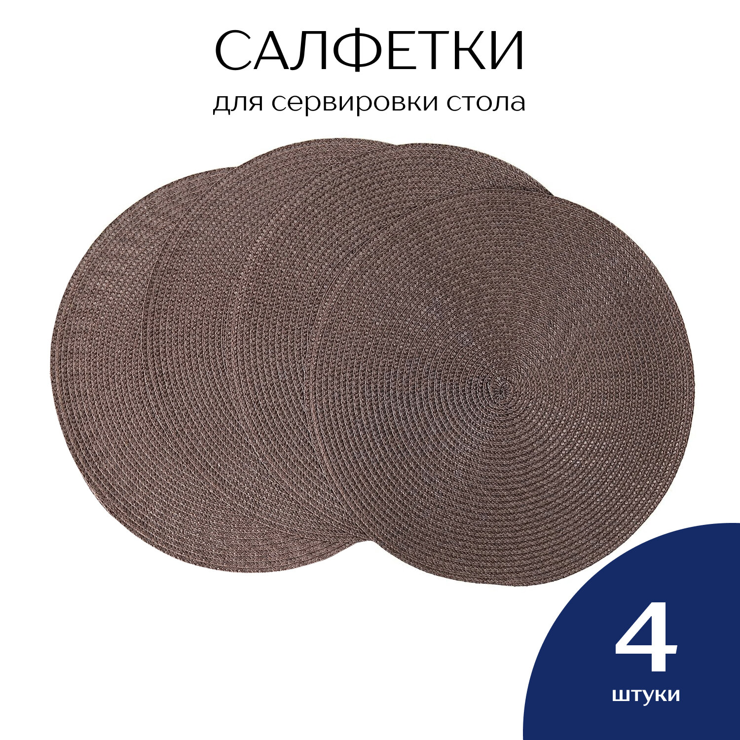 10 цен на Салфетки на стол сервировочные круглые, комплект плейсматов, 4 шт коричневый