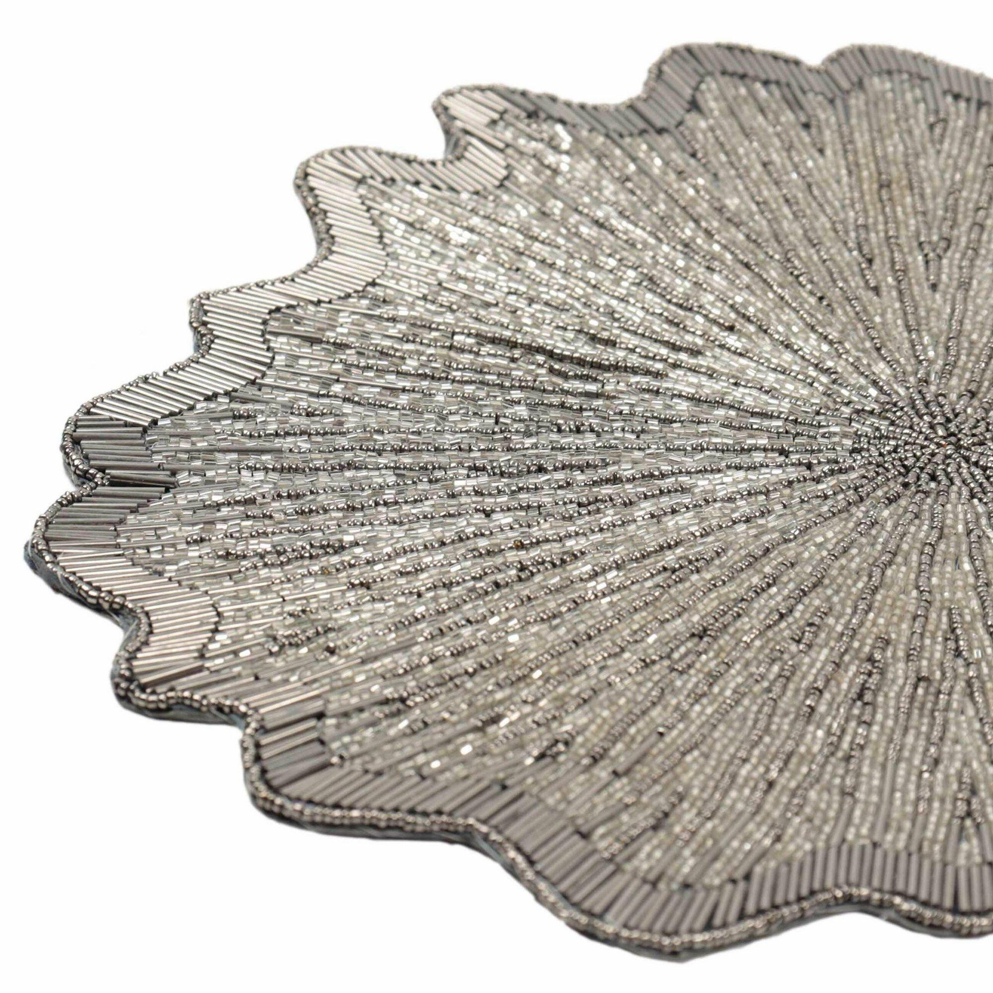 10 цен на (W)Салфетка под приборы, 36 см, бисер, круглая, серо-серебристая, Art beads-t