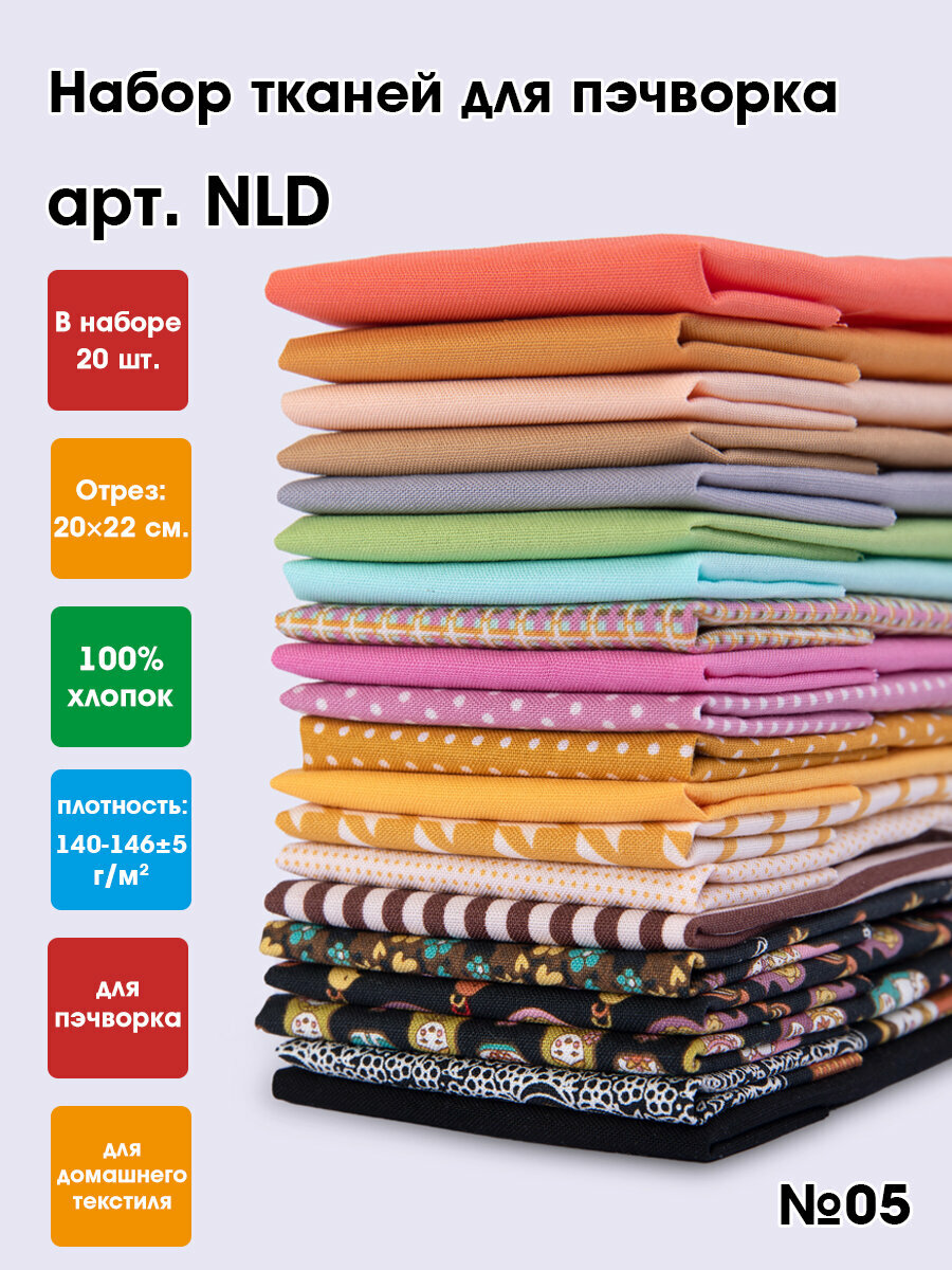 Ткань для пэчворка 20 шт, набор лоскутов "PEPPY" NLD 20 x 22 см №05 информация: