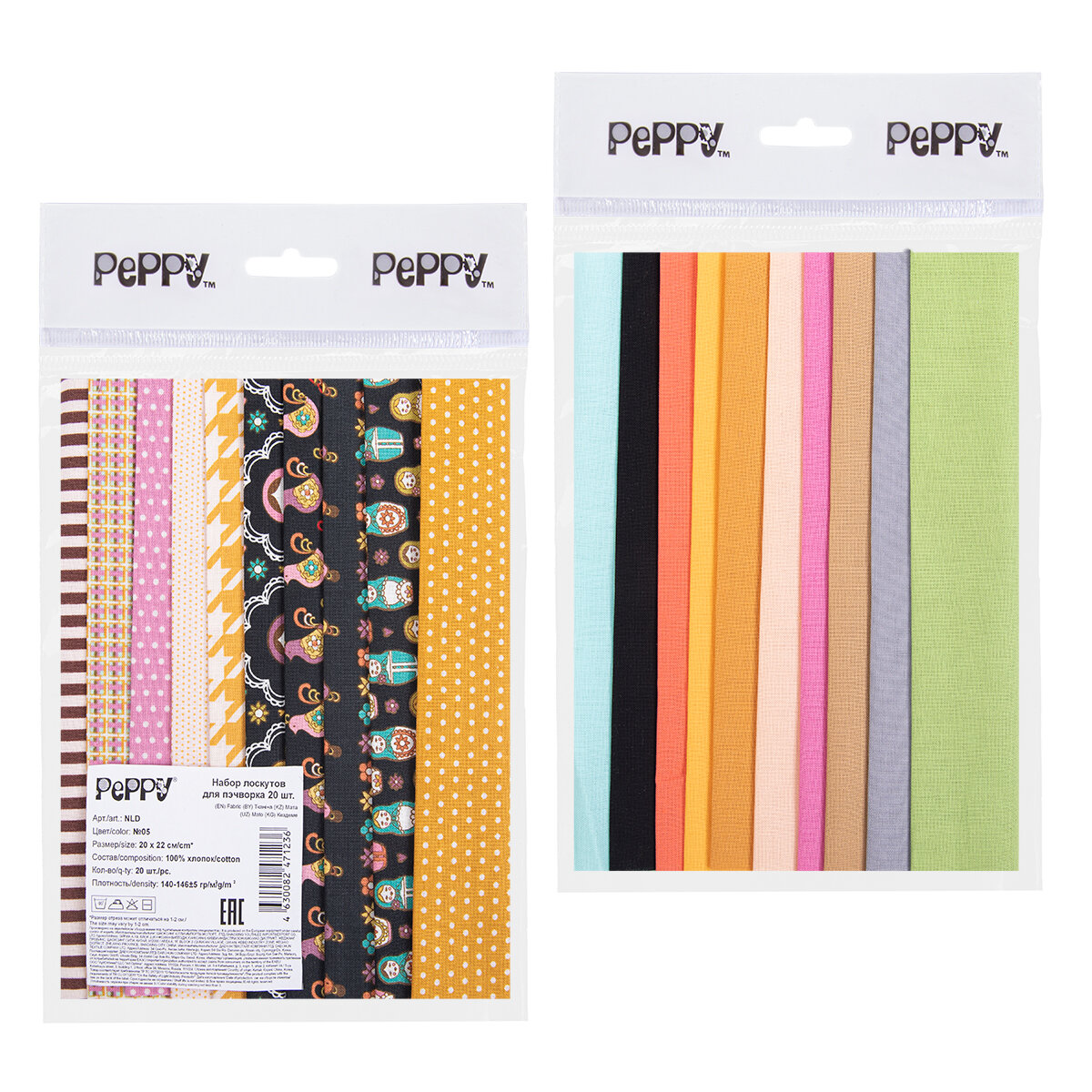 Ткань для пэчворка 20 шт, набор лоскутов "PEPPY" NLD 20 x 22 см №10 434 ₽