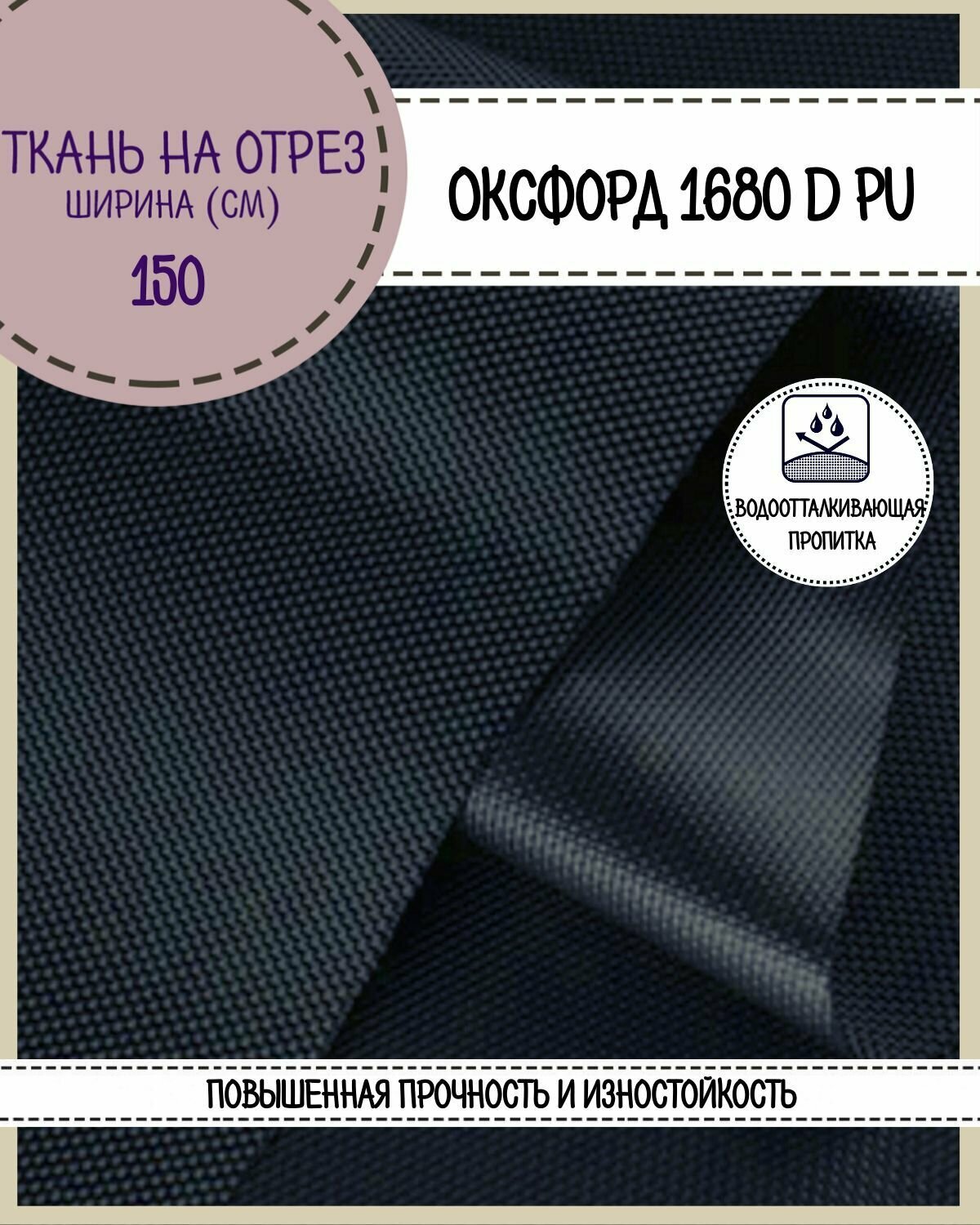 ткань Оксфорд Oxford 1680D PU, пропитка водоотталкивающая, цв. черный, ш-150 см, на отрез, цена за пог. метр