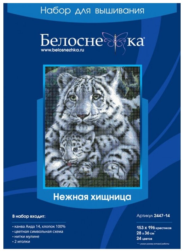 Набор для вышивания счетным крестом Белоснежка "Нежная хищница" 28х36 см. информация: