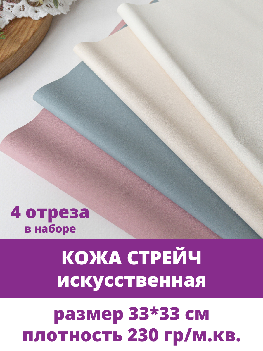 Отзывы на Кожа стрейч ткань искусственная для рукоделия, набор Светлые оттенки, 4 листа