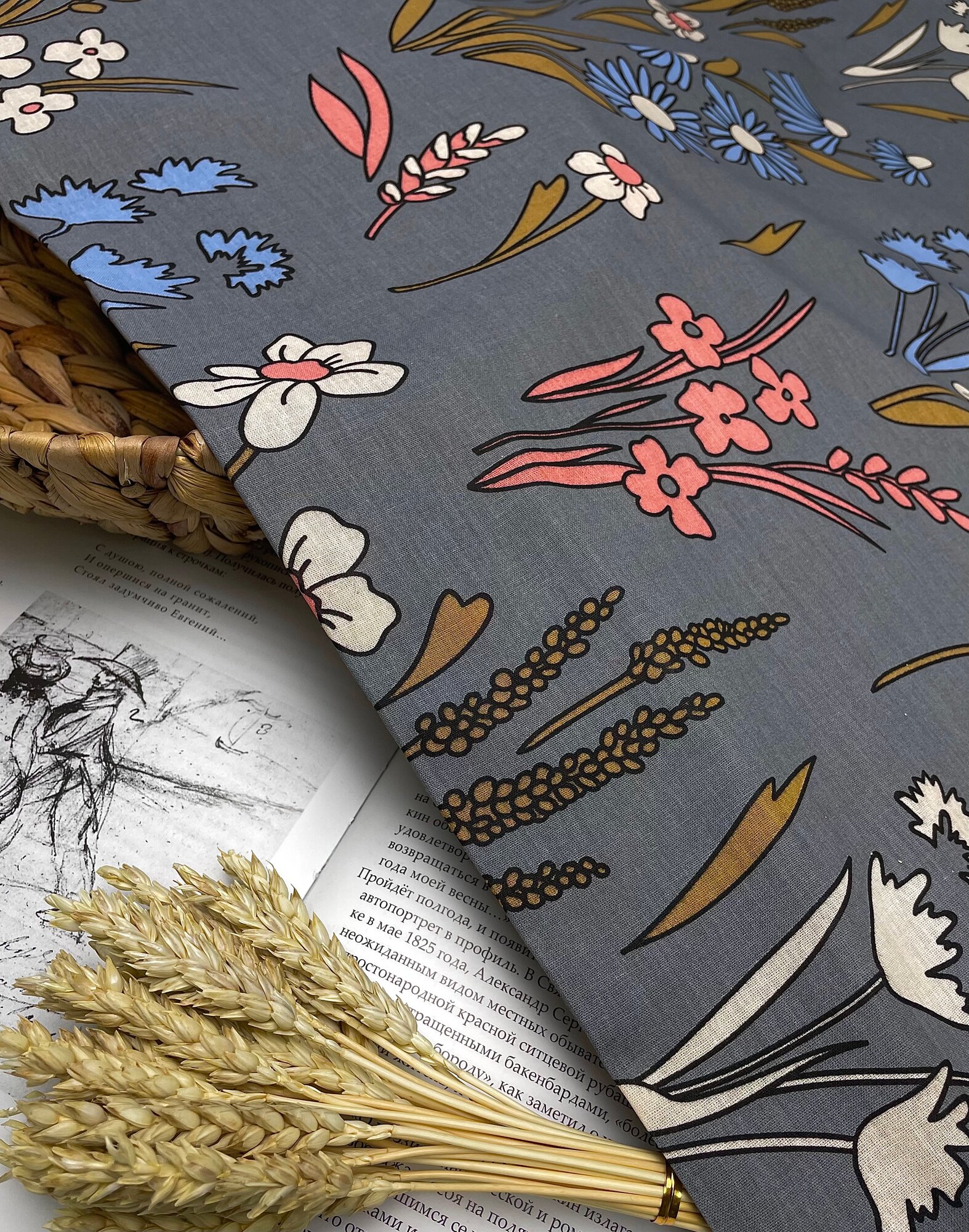 Ткань Поплин для постельного белья Гербарий / 1 п.м. / ширина 220 см / 100% хлопок / 105 гр. кв.м 699 ₽