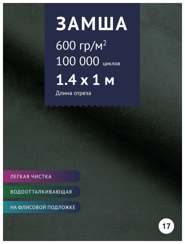 Ткань мебельная Замша, модель Раха, цвет: Черно-зеленый (17), отрез - 1 м (Ткань для шитья, для мебели) информация:
