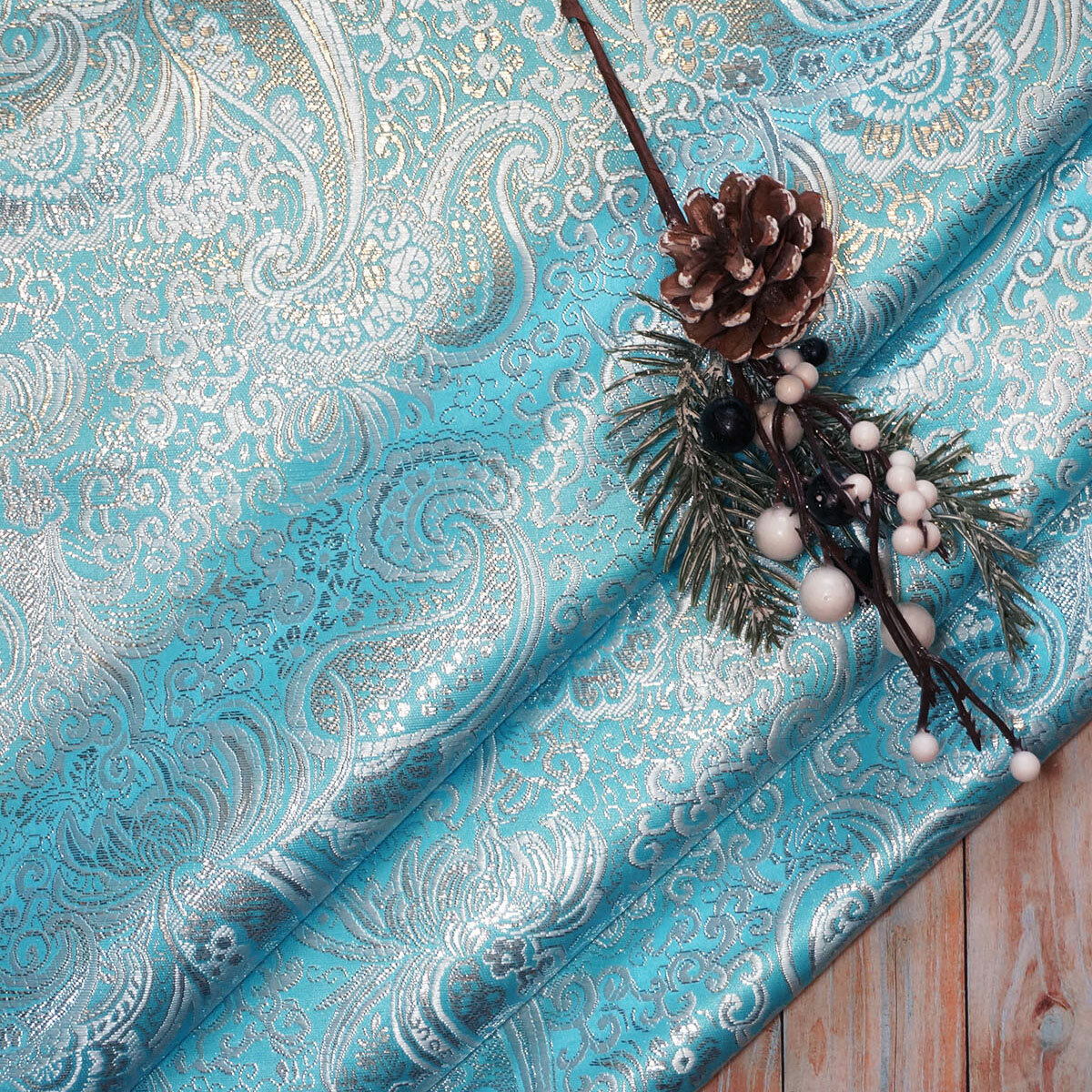 Ткань плательная "Снегурочка (парча, голубая)". Отрез длиной 1.5 м. 1 283 ₽