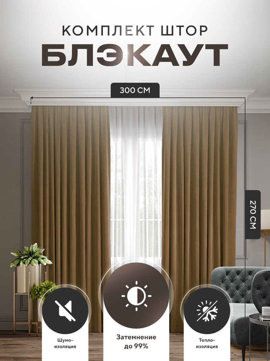10 цен на Комплект штор Блэкаут Blackout 270х300см (150*270см.- 2шт.) Плотные, солнцезащитные портьеры в комнату; для гостиной и спальни, цвет Светло-коричневый