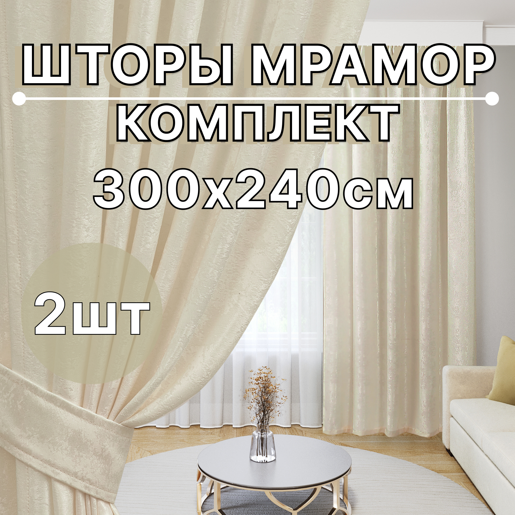 10 цен на Шторы для комнаты 300х240см, Шторы Мрамор Молочный