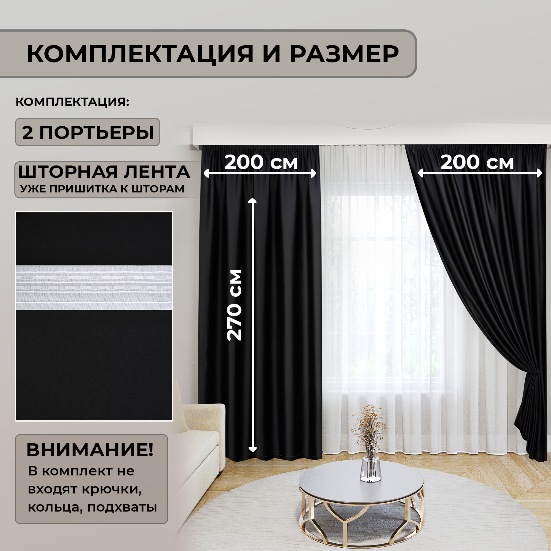 Отзывы на Комплект штор Блэкаут Blackout 270х400см (270*200см.- 2шт.) Плотные, солнцезащитные портьеры в комнату; для гостиной и спальни, цвет Черный