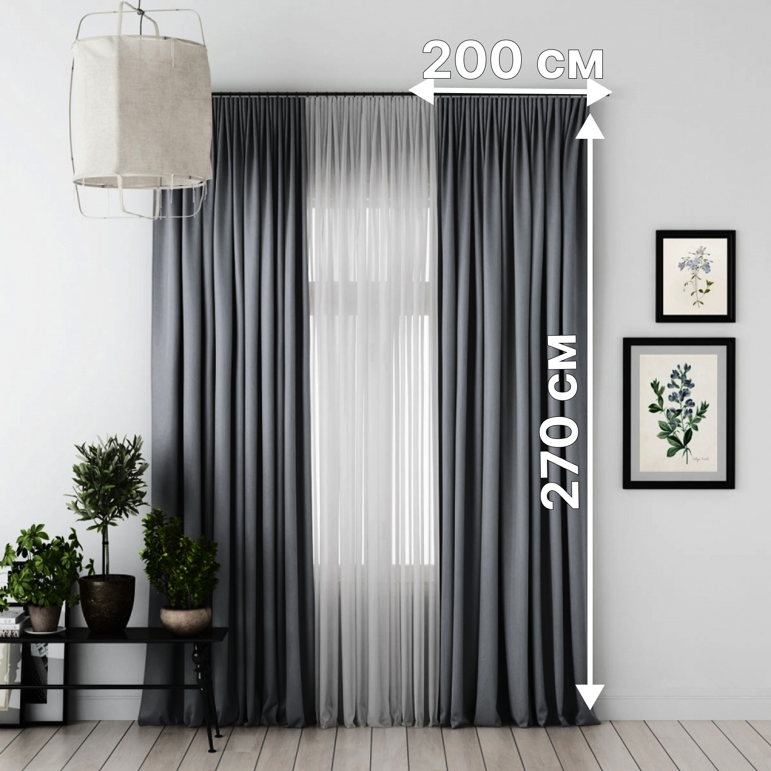 Комплект штор "Блэкаут" 270x400, 2 полотна, цвет серый, ткань блэкаут, крепление лента информация: