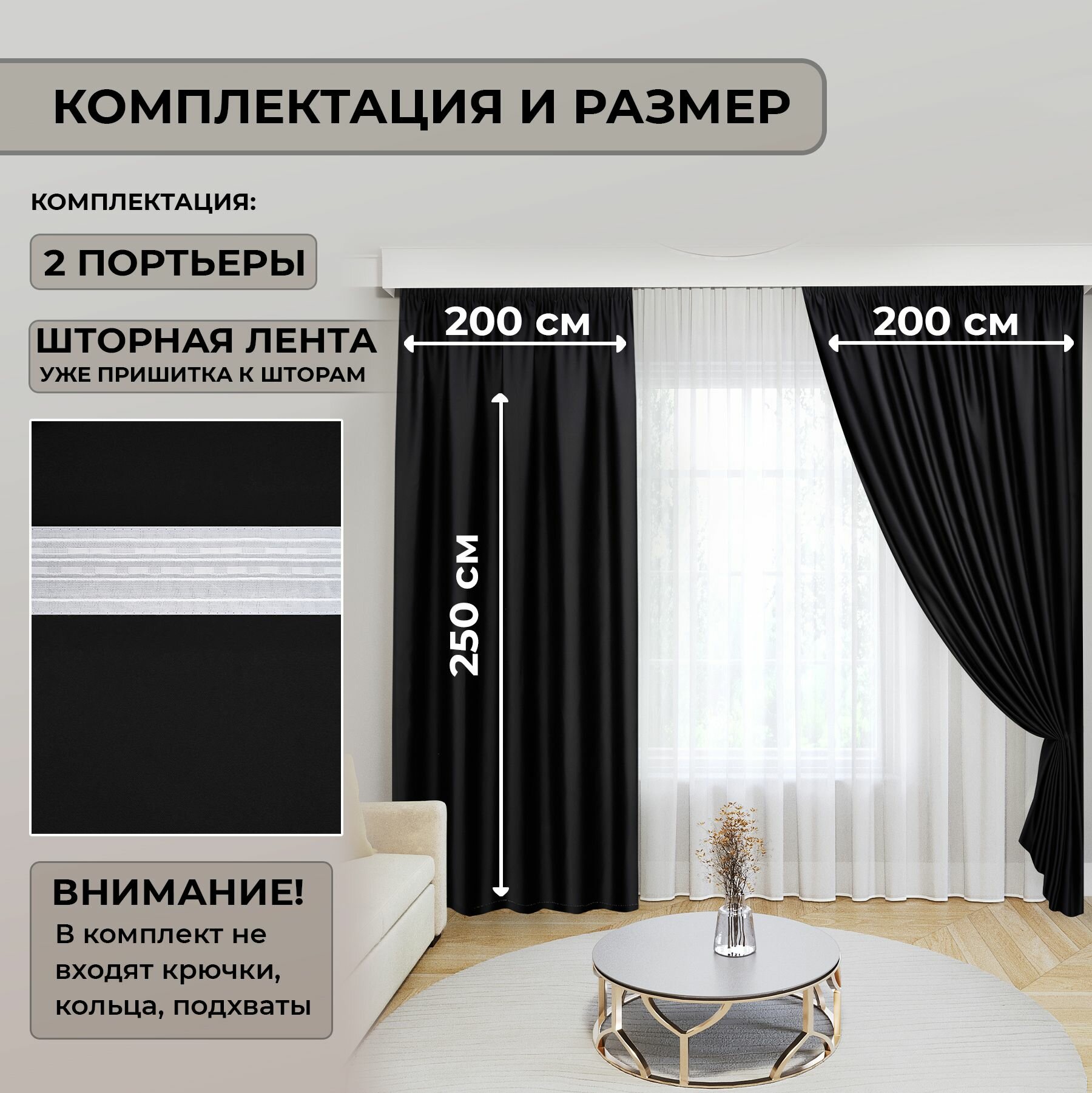 Блэкаут Шторы 300х250 см комплект из 2 полотен по 150 см(Портеры) Черный! Шторы 2 800 ₽