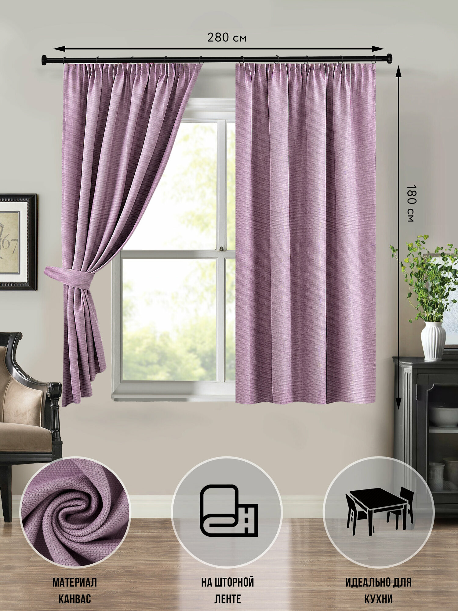 Отзывы на Шторы короткие плотные SvAlMi канвас сиреневые для кухни спальни детской