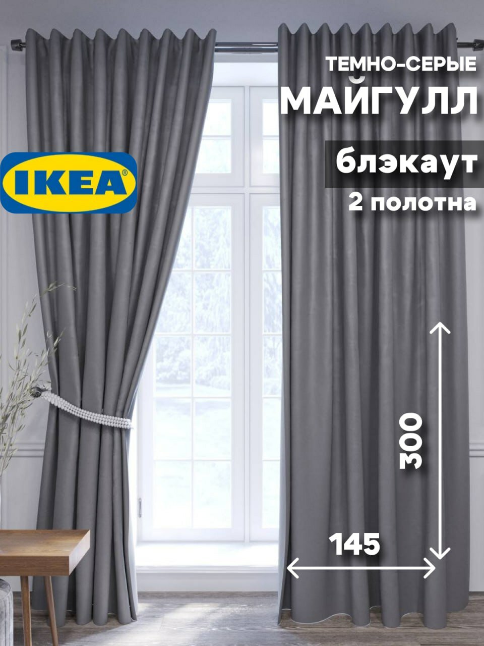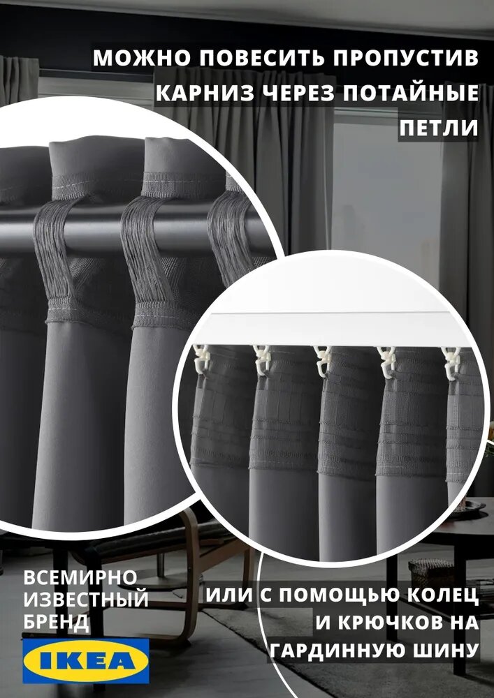 Отзывы на Гардины майгулл икеа шторы на ленте блэкаут 145х300 см, 2 шт., темно-серый