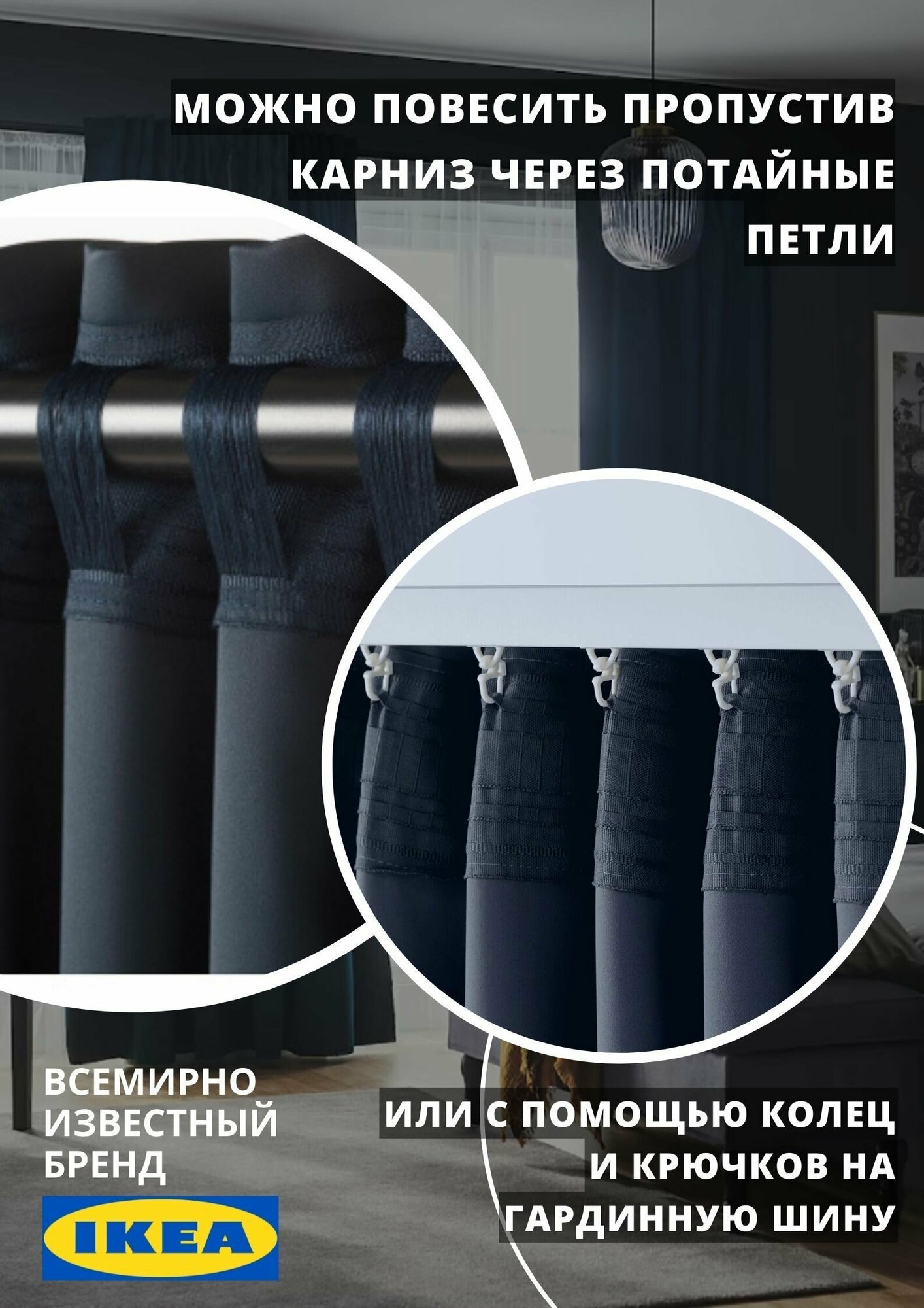 Отзывы на Гардины майгулл икеа шторы на ленте блэкаут, 145х300 см, 2 шт., темно-синий