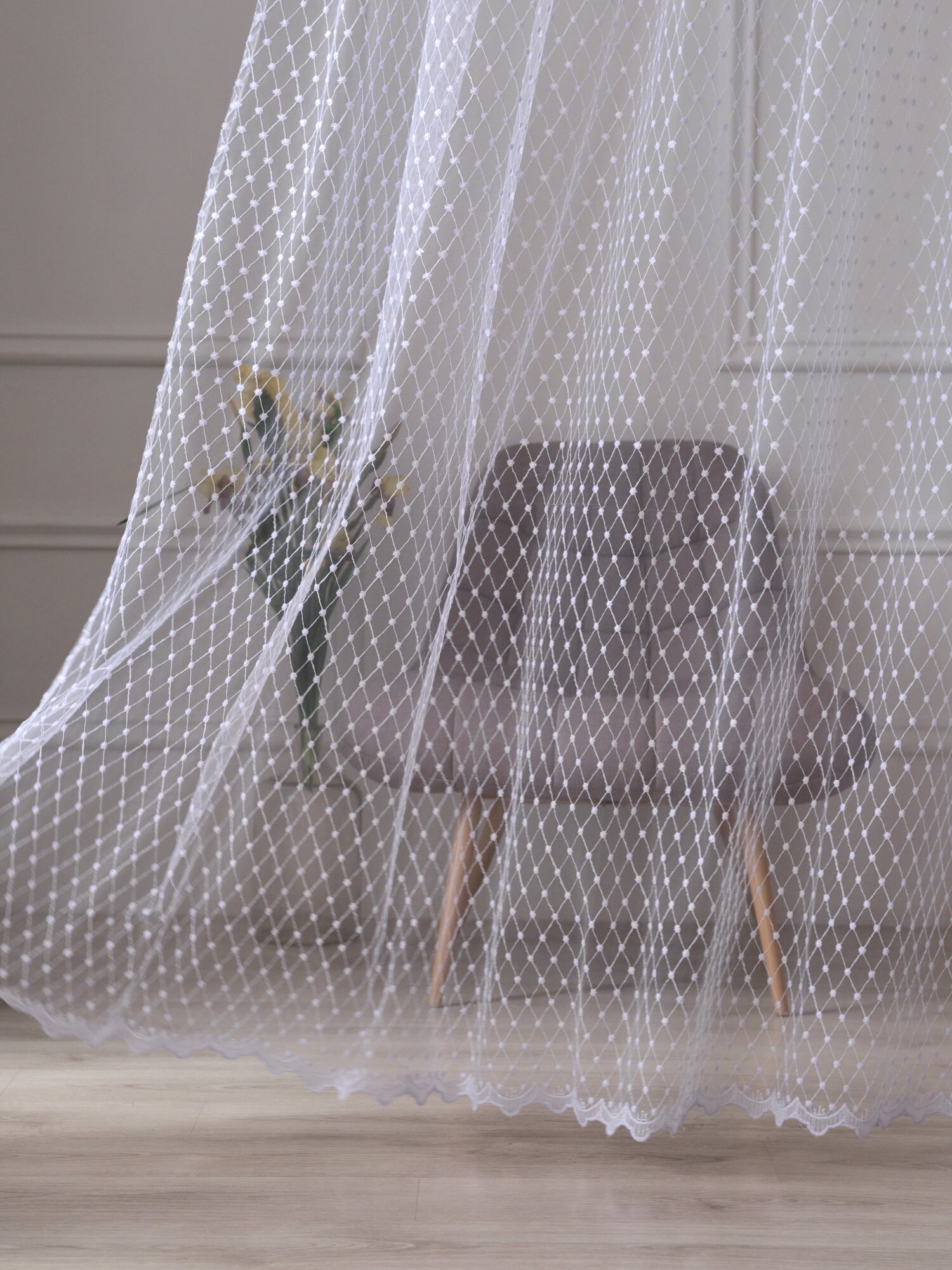 Тюль Вуаль высота 200см ширина 200см, 200х200, белая, для комнаты, кухни в гостиную, детскую, шторы