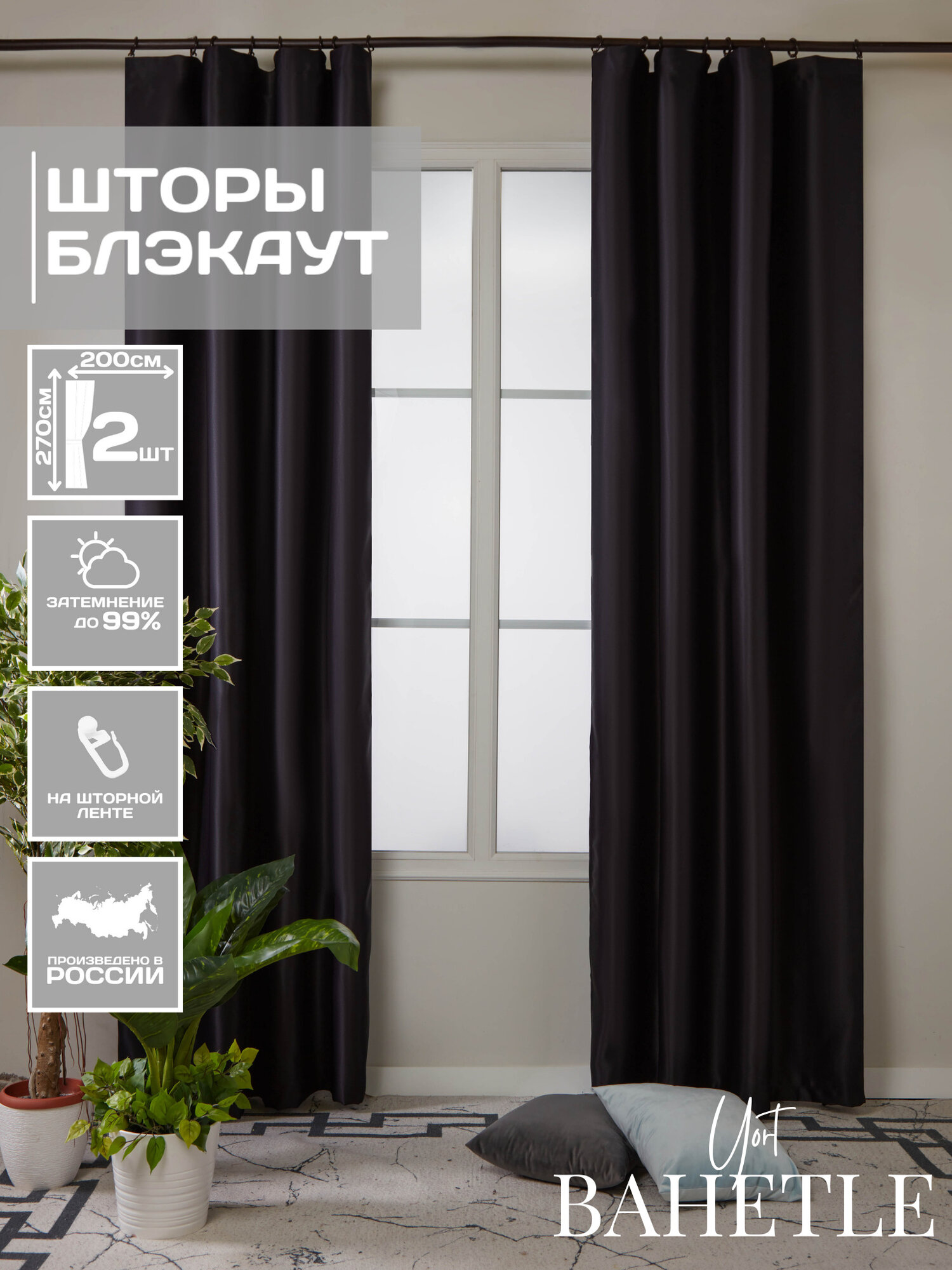 Комплект штор Bahetle Блэкаут 200х250 см 2 шт, плотные интерьерные портьеры на ленте для спальни, детской, зала и гостиной, однотонные черные 3 754 ₽