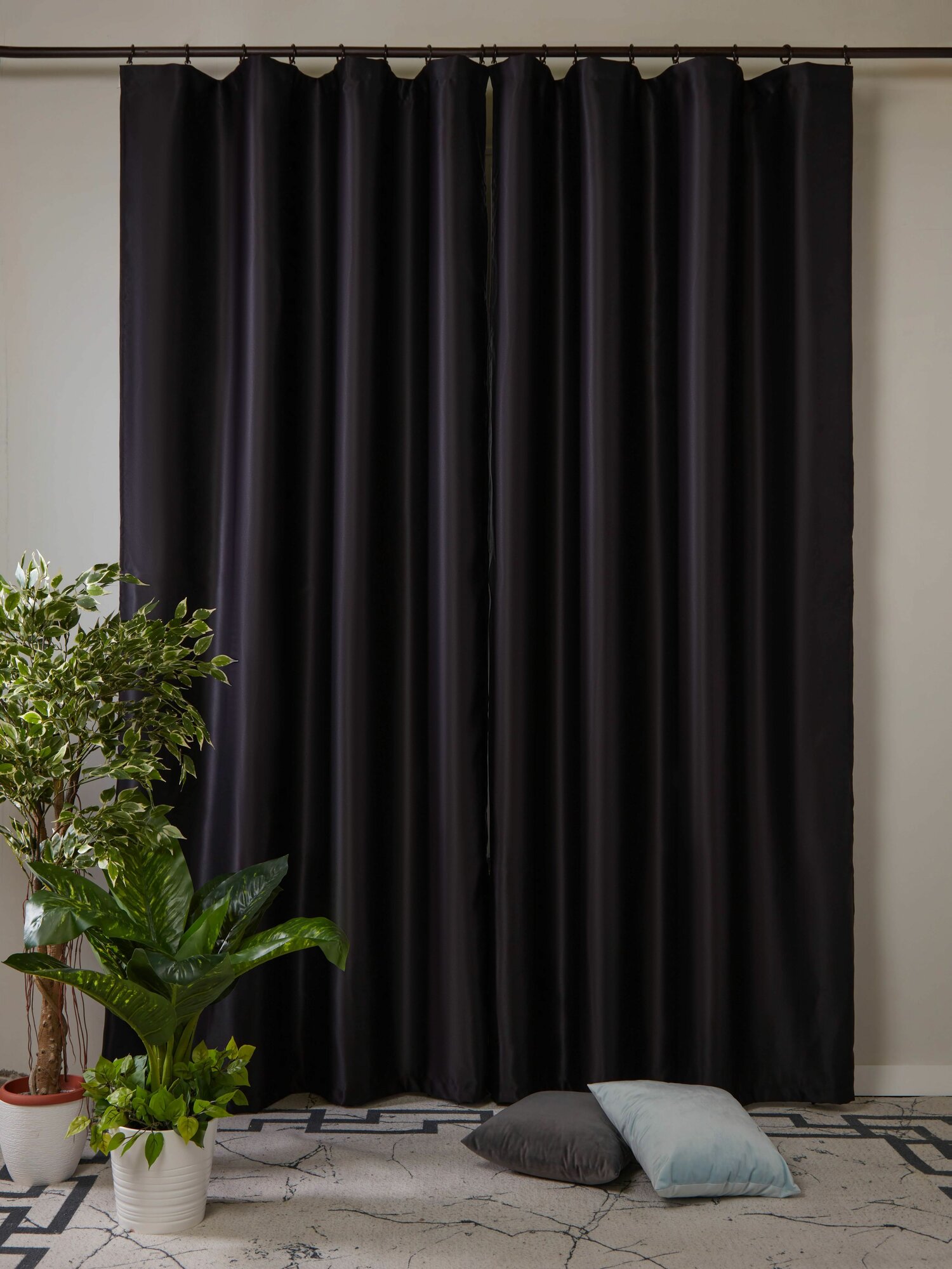 10 цен на Комплект штор Bahetle Блэкаут 150х250 см 2 шт, плотные интерьерные портьеры на ленте для спальни, детской, зала и гостиной, однотонные черные