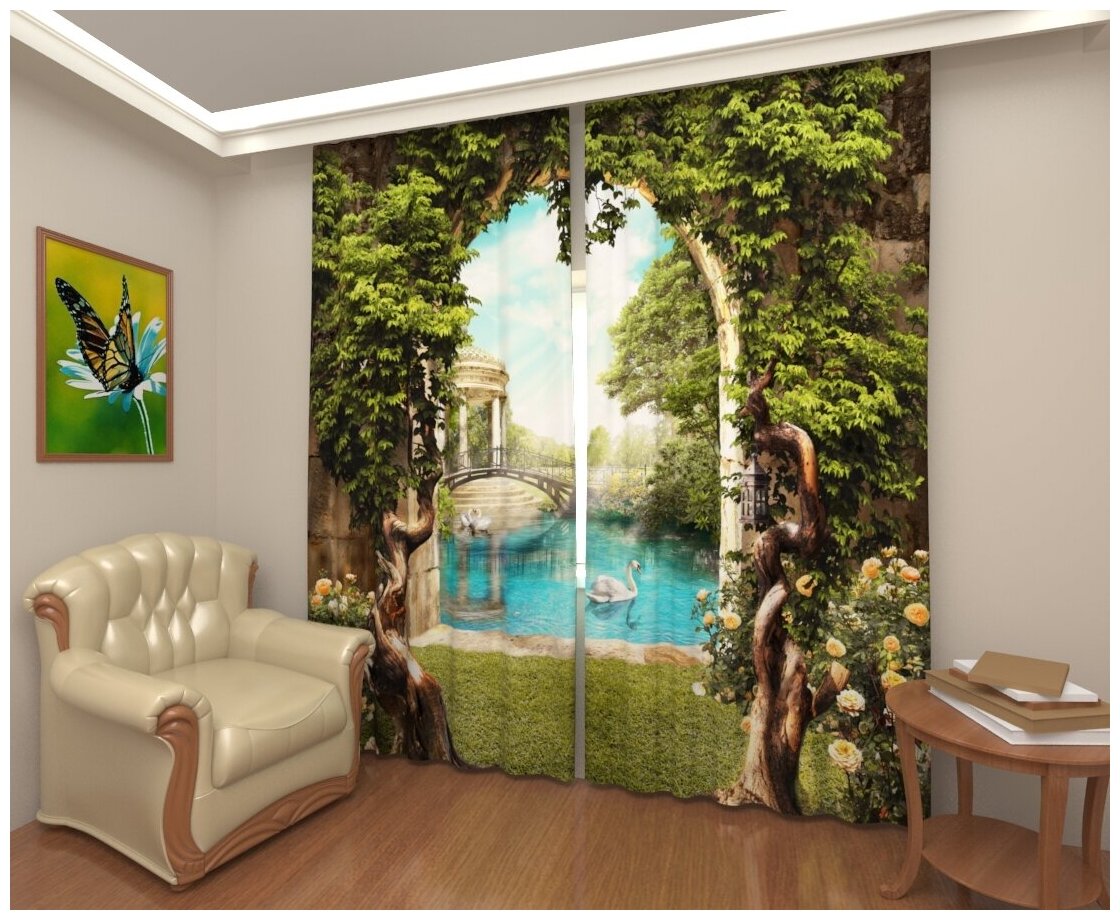 10 цен на Фотошторы Арт Паула Арка в саду Габардин В: 260 см Ш: 2*145 = 290 см