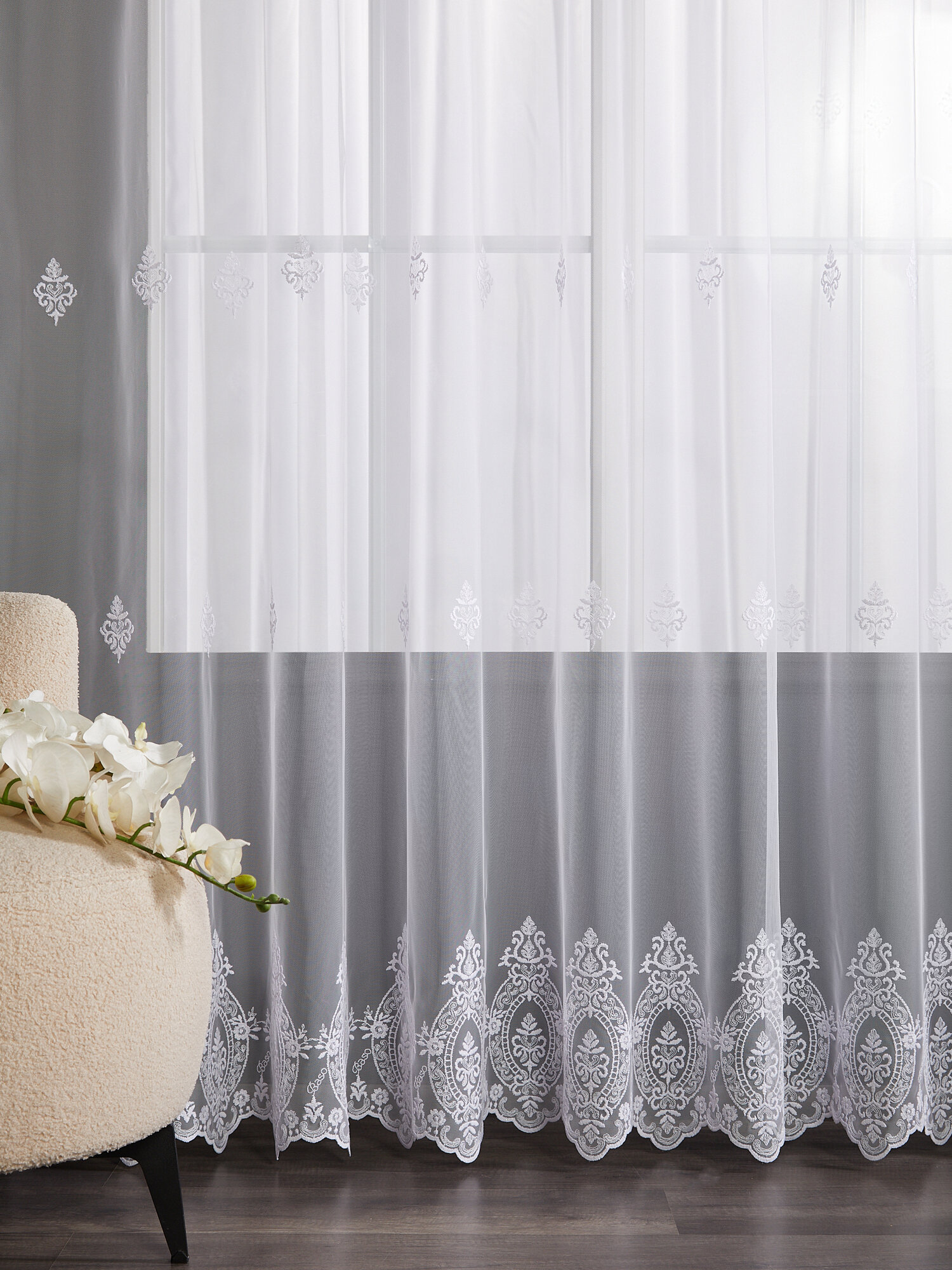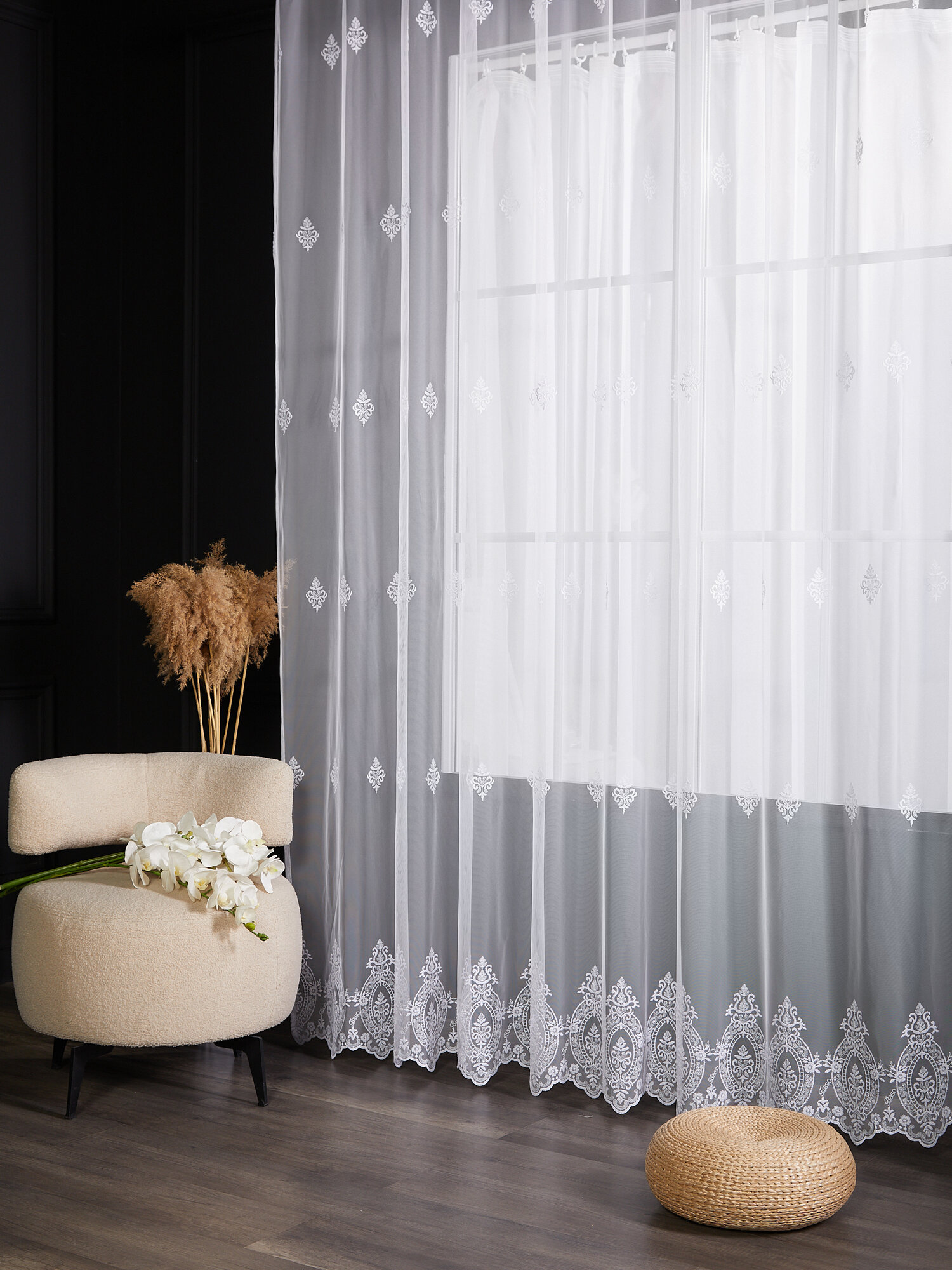 Тюль сетка Baso на шторной ленте с вышивкой / для интерьера гостиной, спальни, кухни, дом, дача / 270х500 см., 1 шт., белый, Турция 3 986 ₽