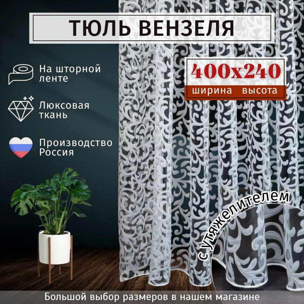 10 цен на Тюль органза "Вензеля" Высота 240см Ширина 400см, 240х400, в гостиную, спальню, детскую, цвет белый